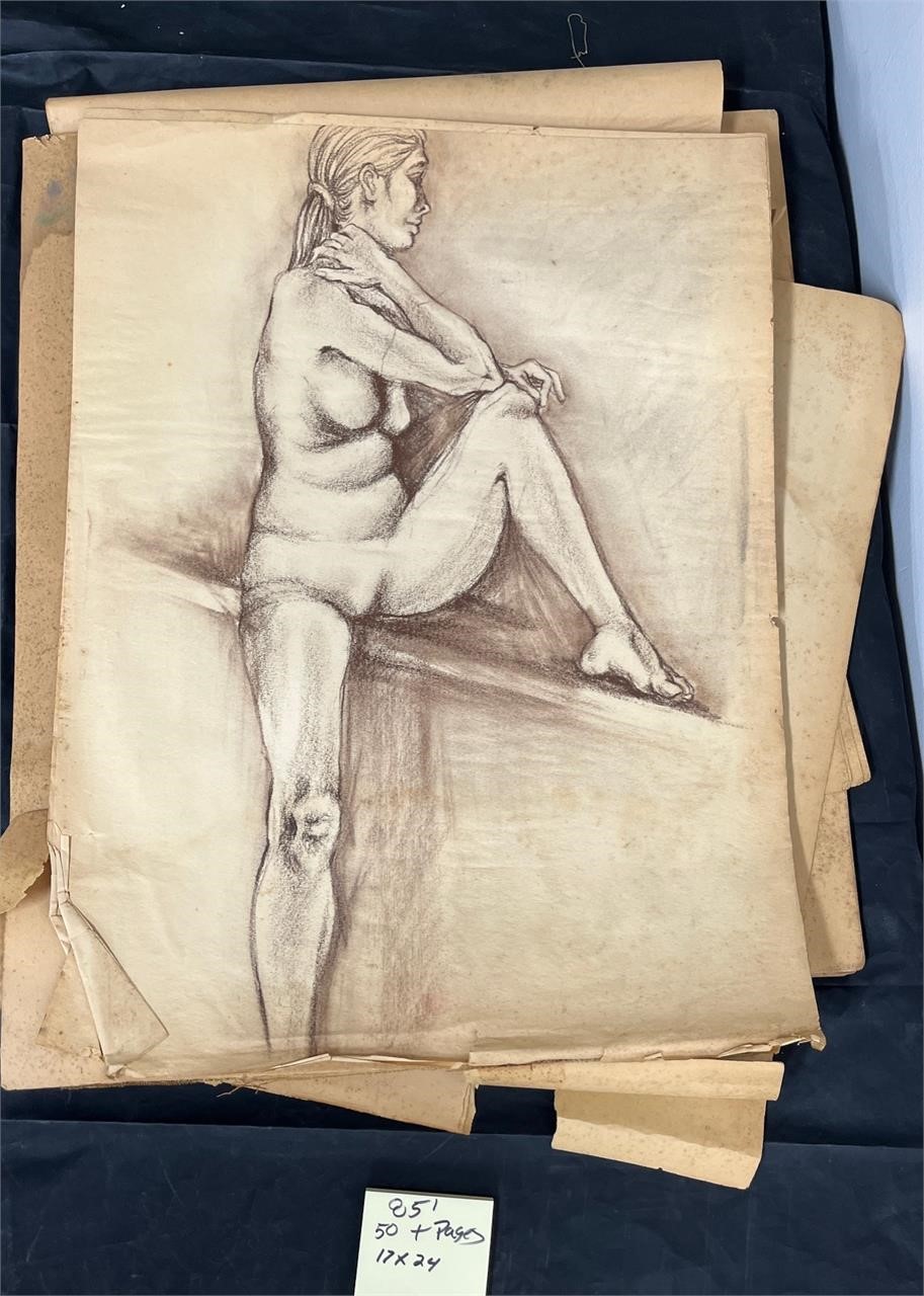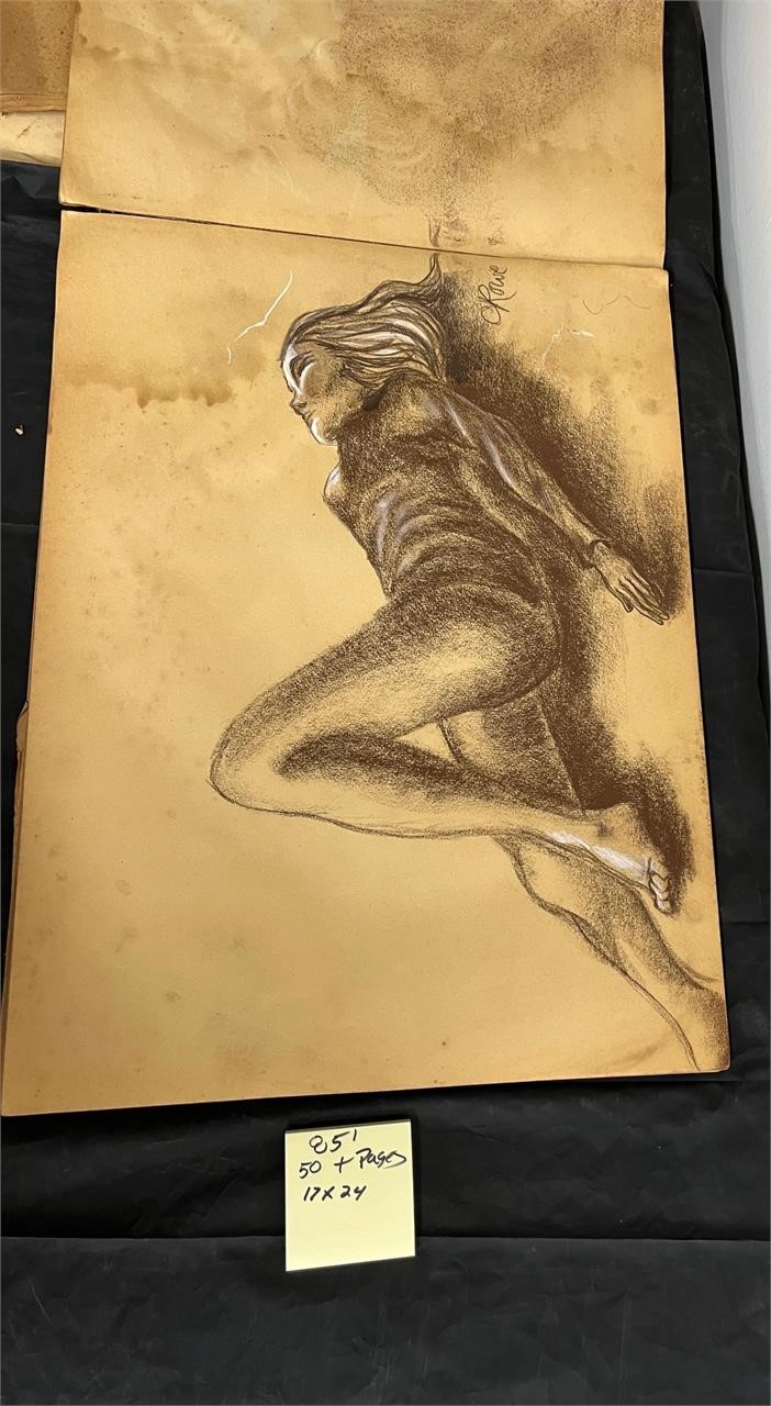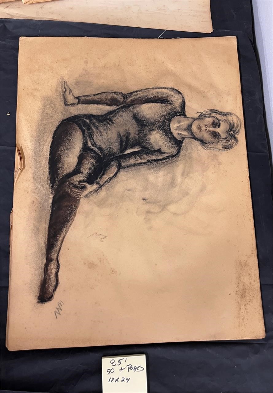 Large group of original art work mostly on large artists sketch poster sized book with charcoal, water color, and sketches represented. Please look at photos carefully. All sales are final. Items sold as is. We offer virtual and in person previews of any lots up until auction day. By placing a bid you agree to allow us to charge the card on file with hi-bid to complete your purchase and to ship items to you if you are not picking items up at our office. We are a veteran owned company. We are currently accepting assignments. Please contact us at [email protected] for more information.