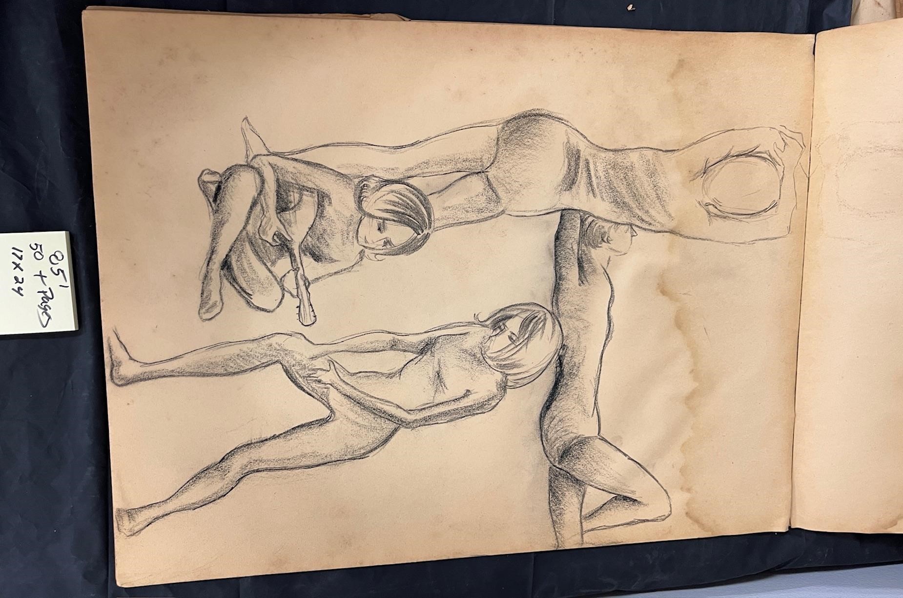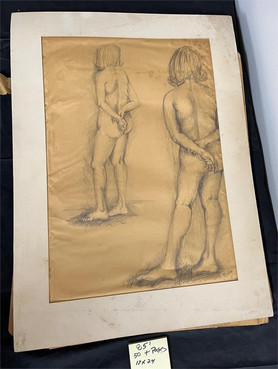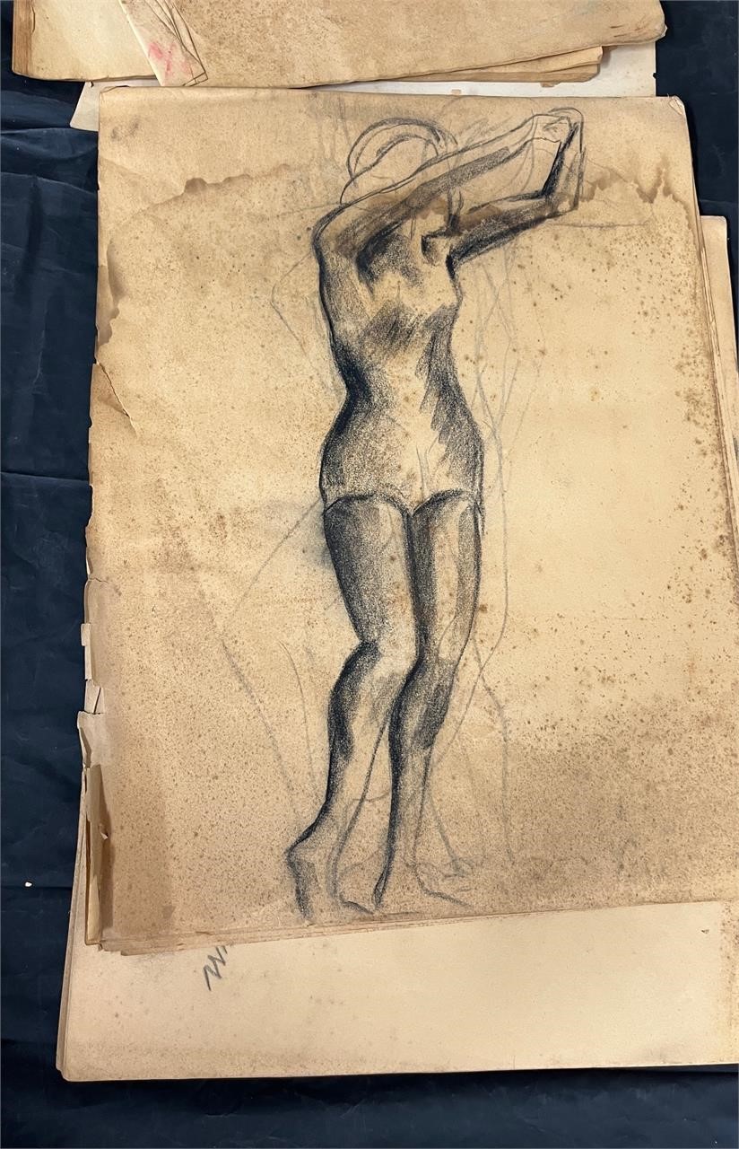 Large group of original art work mostly on large artists sketch poster sized book with charcoal, water color, and sketches represented. Please look at photos carefully. All sales are final. Items sold as is. We offer virtual and in person previews of any lots up until auction day. By placing a bid you agree to allow us to charge the card on file with hi-bid to complete your purchase and to ship items to you if you are not picking items up at our office. We are a veteran owned company. We are currently accepting assignments. Please contact us at [email protected] for more information.