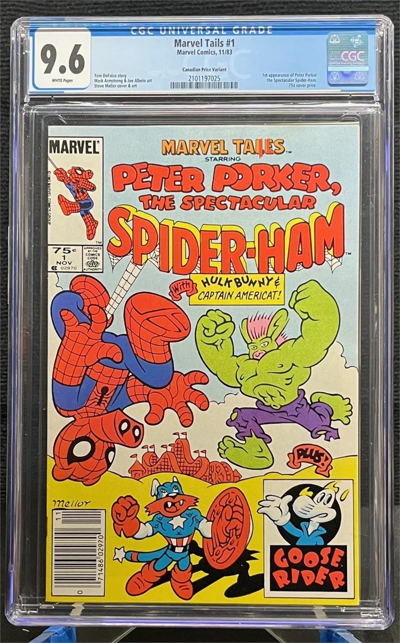 Only 71 copies in the CGC Census. Hard to find in high grade Newsstand Edition featuring the first appearance of Peter Porker, graded 9.6 by CGC. All items are sold as is. Please look at pictures carefully to determine what you believe are the condition of each lot. By choosing which card to use to register to bid, you authorize us to use the card on file that you used at the time of registration.at the end of the auction to pay for any lots and shipping you won. Happy Bidding and Best of luck! We offer in-house shipping.