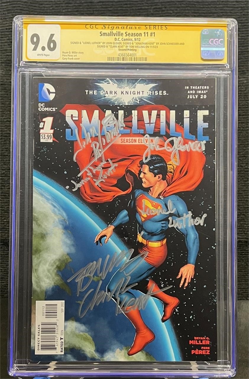 Past sales include a recently sold copy on ebay for $900. Rare 2nd Print Quadruple Signed with character names! Smallville comic signed by Smallville stars John Schneider and remarked Jonathan Kent and Tom Welling and remarked Clark Kent. Also Signatures and “Lionel Luther by John Glover All items are sold as is. Please look at pictures carefully to determine what you believe are the condition of each lot. By choosing which card to use to register to bid, you authorize us to use the card on file that you used at the time of registration.at the end of the auction to pay for any lots and shipping you won. Happy Bidding and Best of luck! We offer in-house shipping.