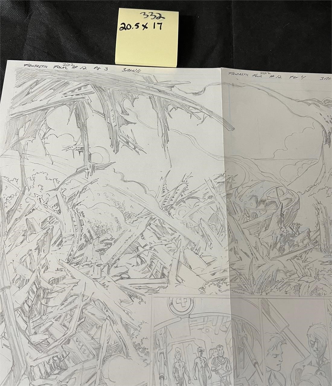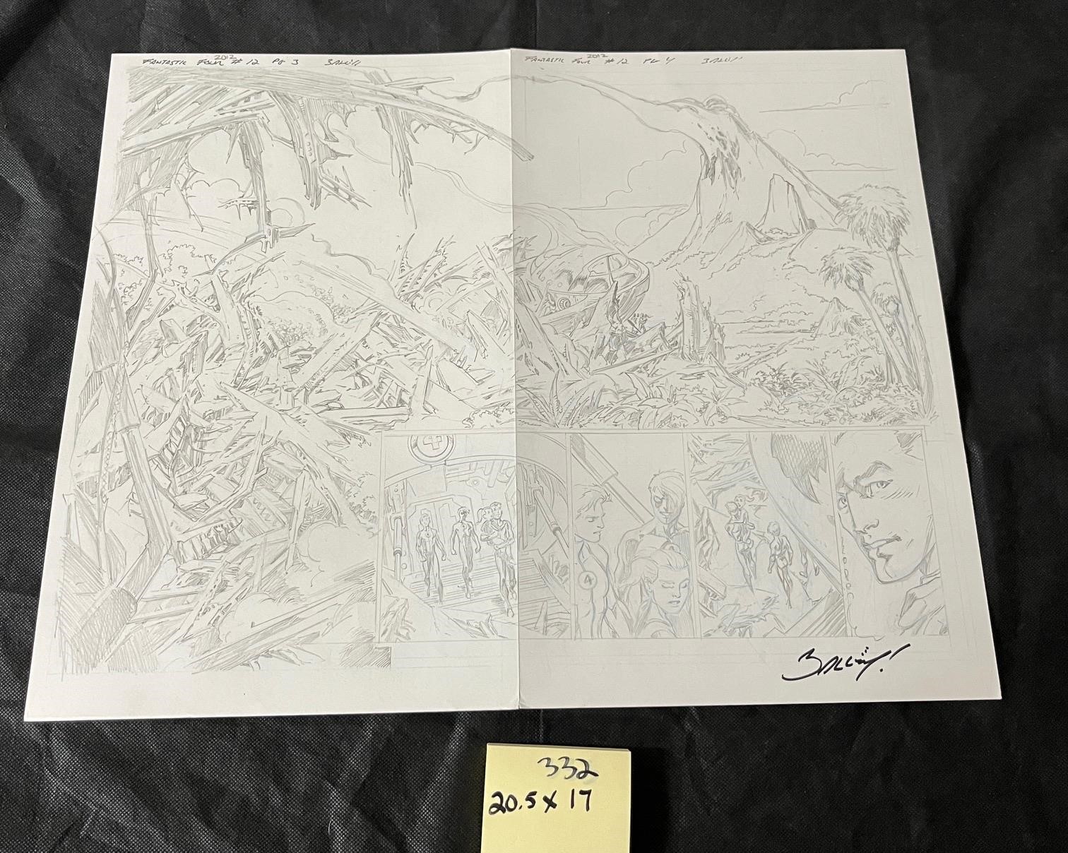 Retails for $300. Mark Bagley Signed Double Page Splash of Fantastic Four 12 page 3. All items are sold as is. Please look at pictures carefully to determine what you believe are the condition of each lot. By choosing which card to use to register to bid, you authorize us to use the card on file that you used at the time of registration.at the end of the auction to pay for any lots and shipping you won. Happy Bidding and Best of luck! We offer in-house shipping.