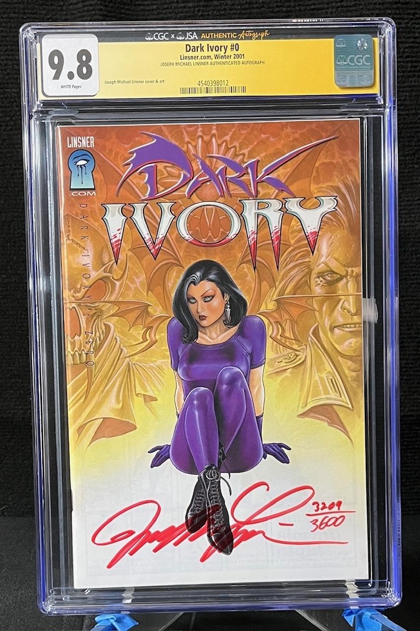 JSA certified Michael Linsner Signature of Dark Ivy #0 Comic and graded a 9.8 by CGC All items are sold as is. Please look at pictures carefully to determine what you believe are the condition of each lot. By choosing which card to use to register to bid, you authorize us to use the card on file that you used at the time of registration.at the end of the auction to pay for any lots and shipping you won. Happy Bidding and Best of luck! We offer in-house shipping.