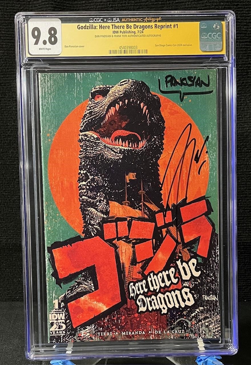 Variant to Godzilla comic authenticated by JSA and graded a 9.8 by CGC All items are sold as is. Please look at pictures carefully to determine what you believe are the condition of each lot. By choosing which card to use to register to bid, you authorize us to use the card on file that you used at the time of registration.at the end of the auction to pay for any lots and shipping you won. Happy Bidding and Best of luck! We offer in-house shipping.