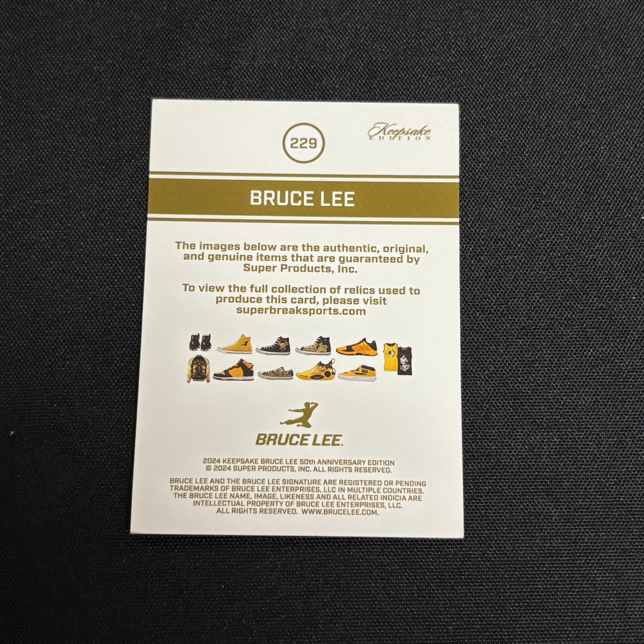 2024 Keepsake Bruce Lee 50th Anniversary Edition Relic Card. All items are sold as is. Please look at pictures carefully to determine what you believe are the condition of each lot. By choosing which card to use to register to bid, you authorize us to use the card on file that you used at the time of registration.at the end of the auction to pay for any lots and shipping you won. Happy Bidding and Best of luck! We offer in-house shipping. We are currently accepting consignments.