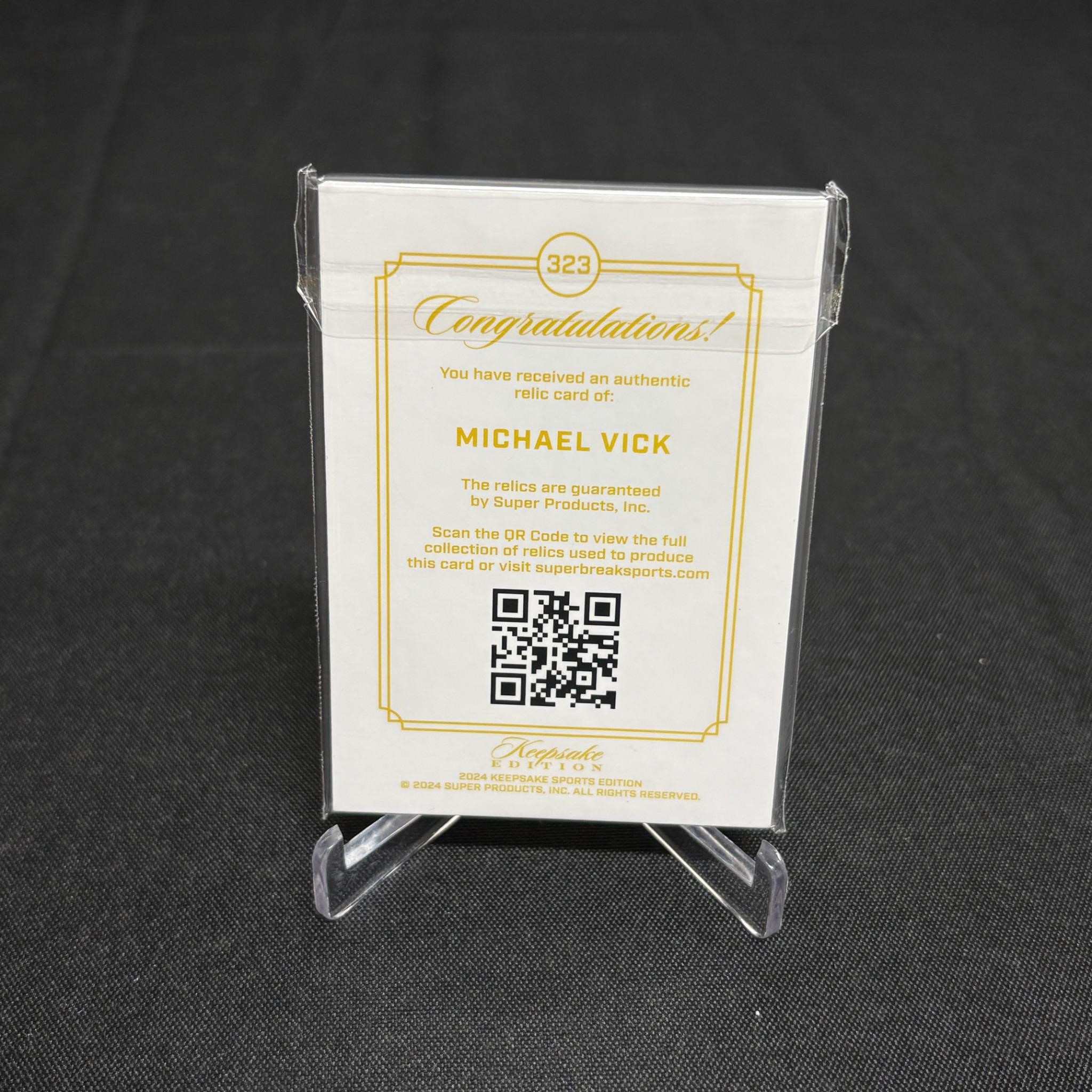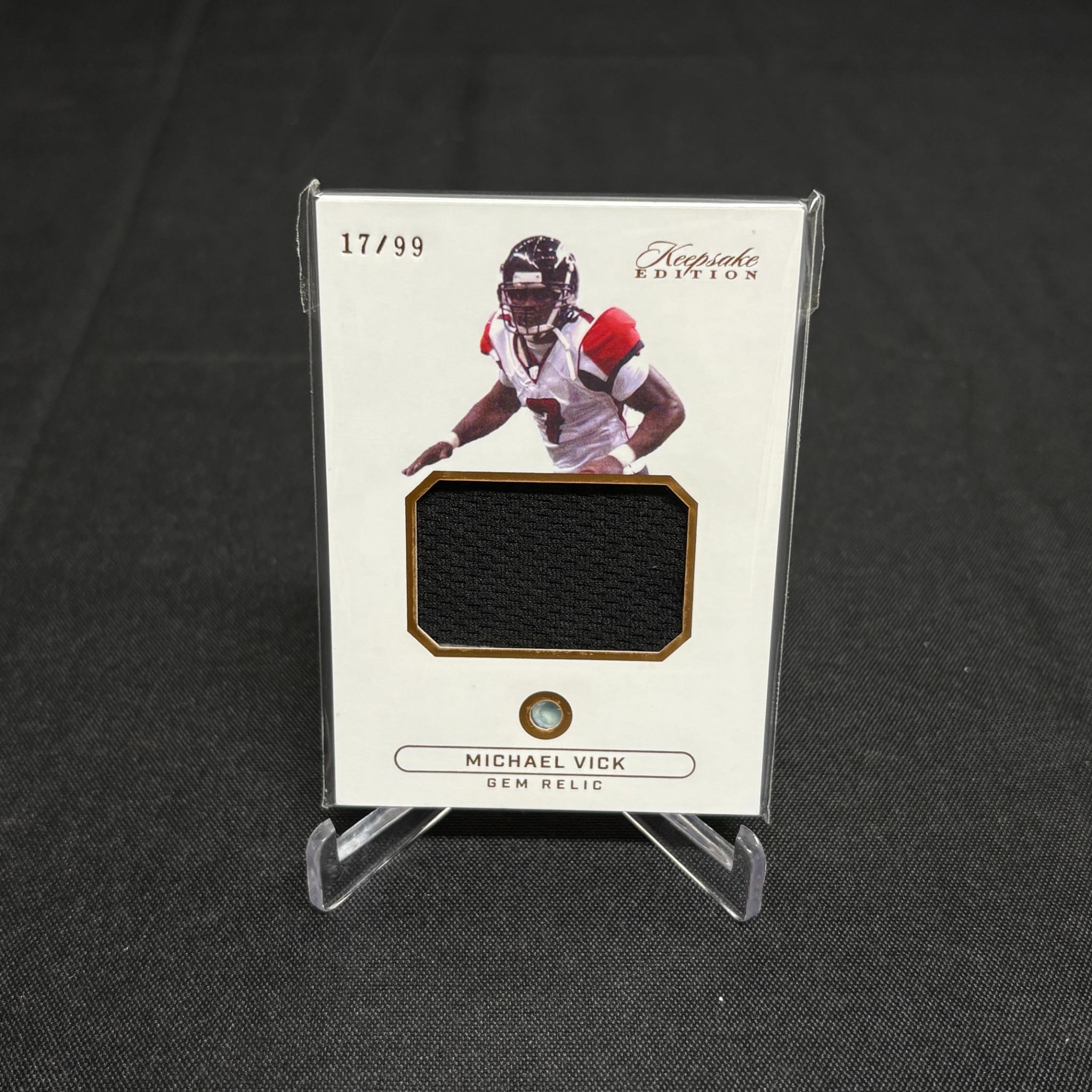2024 Keepsake Sports Edition Football Player Michael Vick Gem Relic Card Limited to 99. All items are sold as is. Please look at pictures carefully to determine what you believe are the condition of each lot. By choosing which card to use to register to bid, you authorize us to use the card on file that you used at the time of registration.at the end of the auction to pay for any lots and shipping you won. Happy Bidding and Best of luck! We offer in-house shipping. We are currently accepting consignments.
