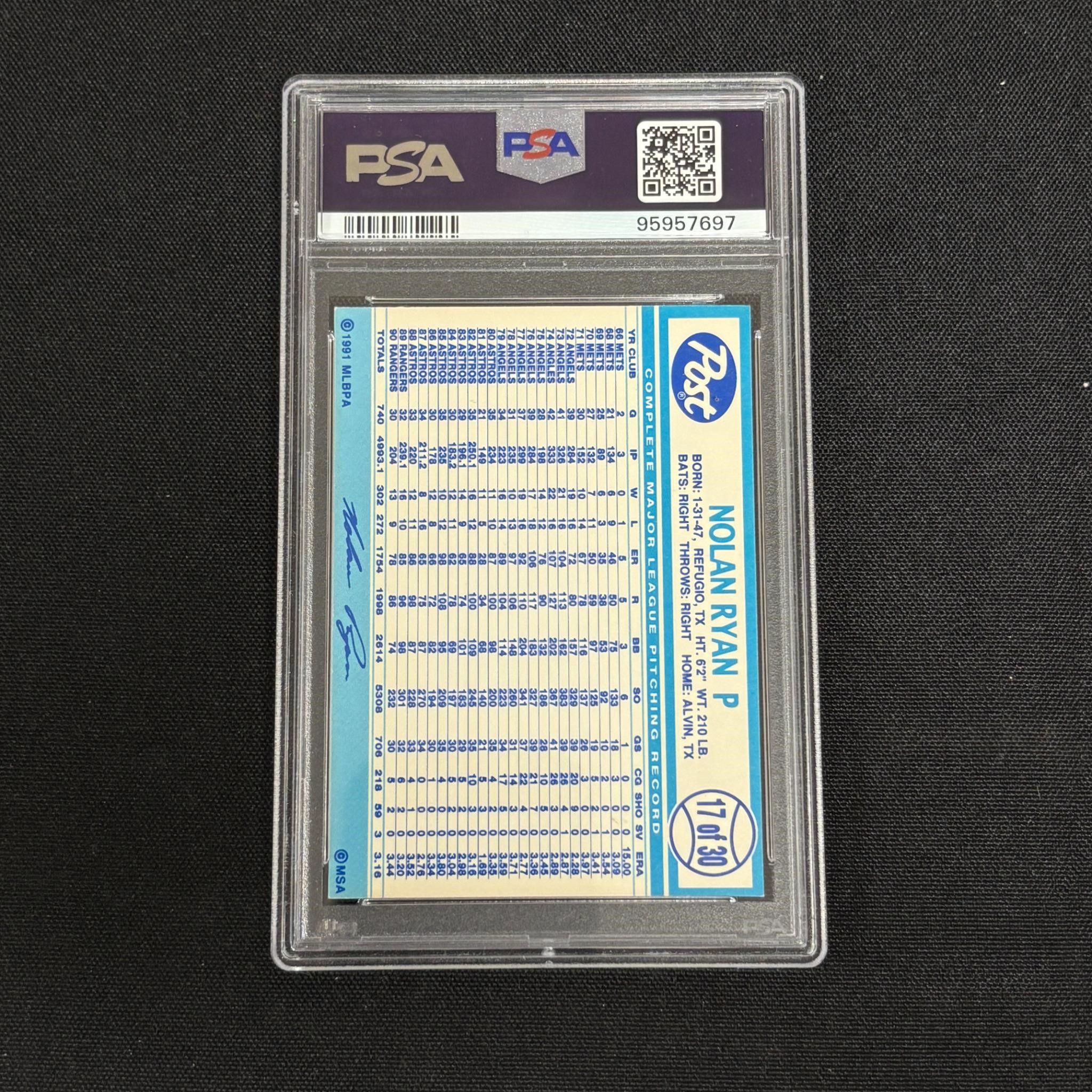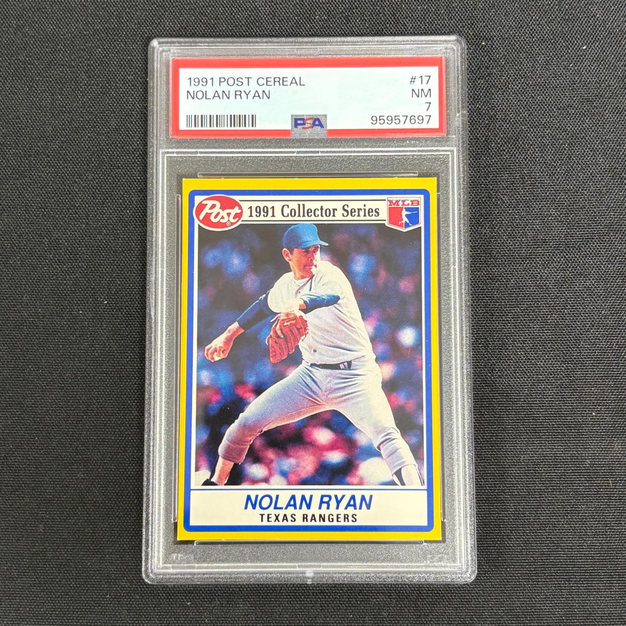 PSA 7 Nolan Ryan #17 1991 Post Cereal Baseball Card. All items are sold as is. Please look at pictures carefully to determine what you believe are the condition of each lot. By choosing which card to use to register to bid, you authorize us to use the card on file that you used at the time of registration.at the end of the auction to pay for any lots and shipping you won. Happy Bidding and Best of luck! We offer in-house shipping. We are currently accepting consignments.