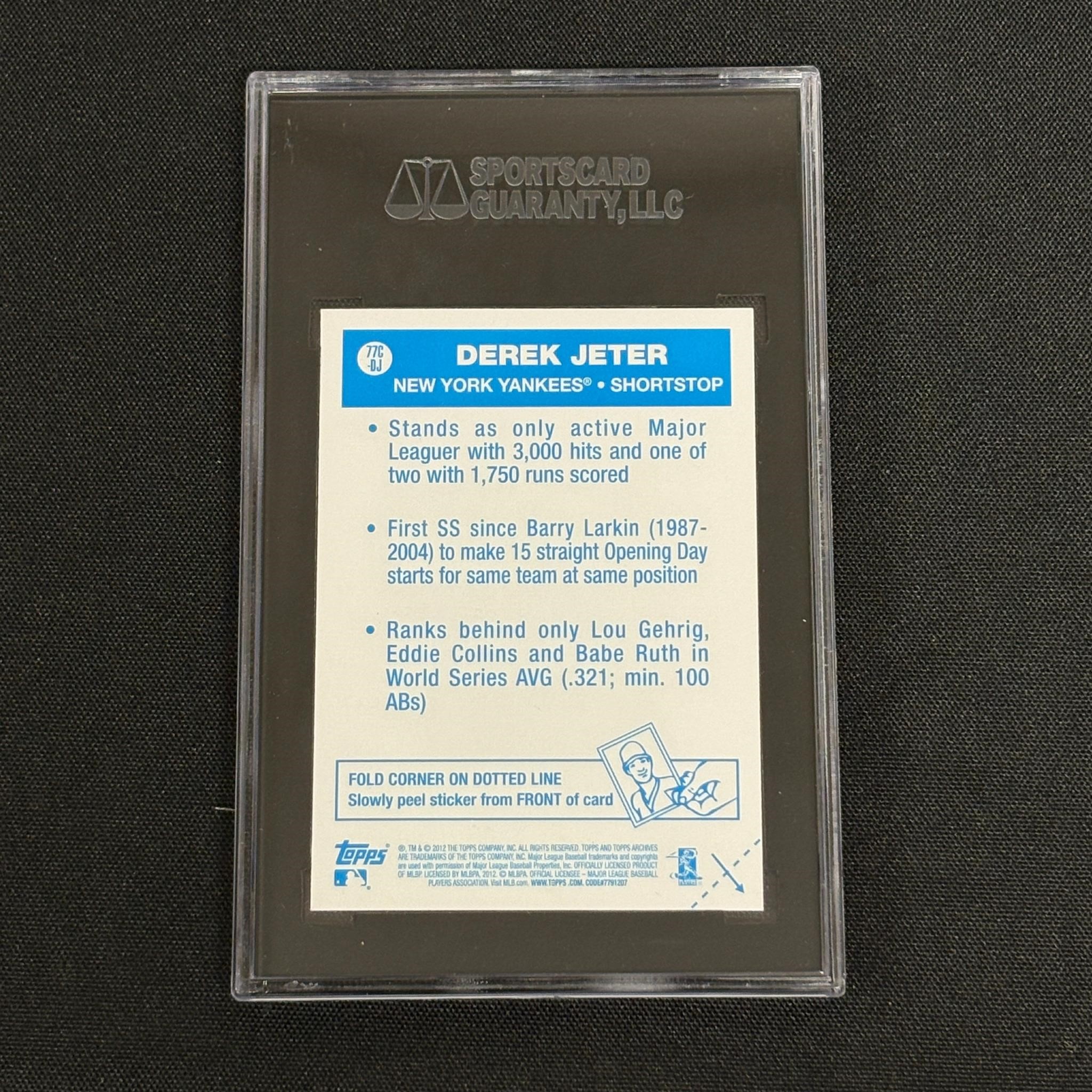 SGC 9 Derek Jeter 2012 Topps Archives Cloth Sticker Baseball Card. All items are sold as is. Please look at pictures carefully to determine what you believe are the condition of each lot. By choosing which card to use to register to bid, you authorize us to use the card on file that you used at the time of registration.at the end of the auction to pay for any lots and shipping you won. Happy Bidding and Best of luck! We offer in-house shipping. We are currently accepting consignments.