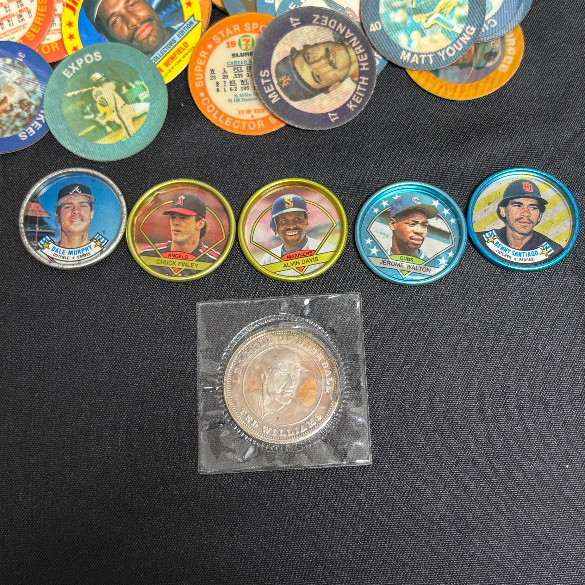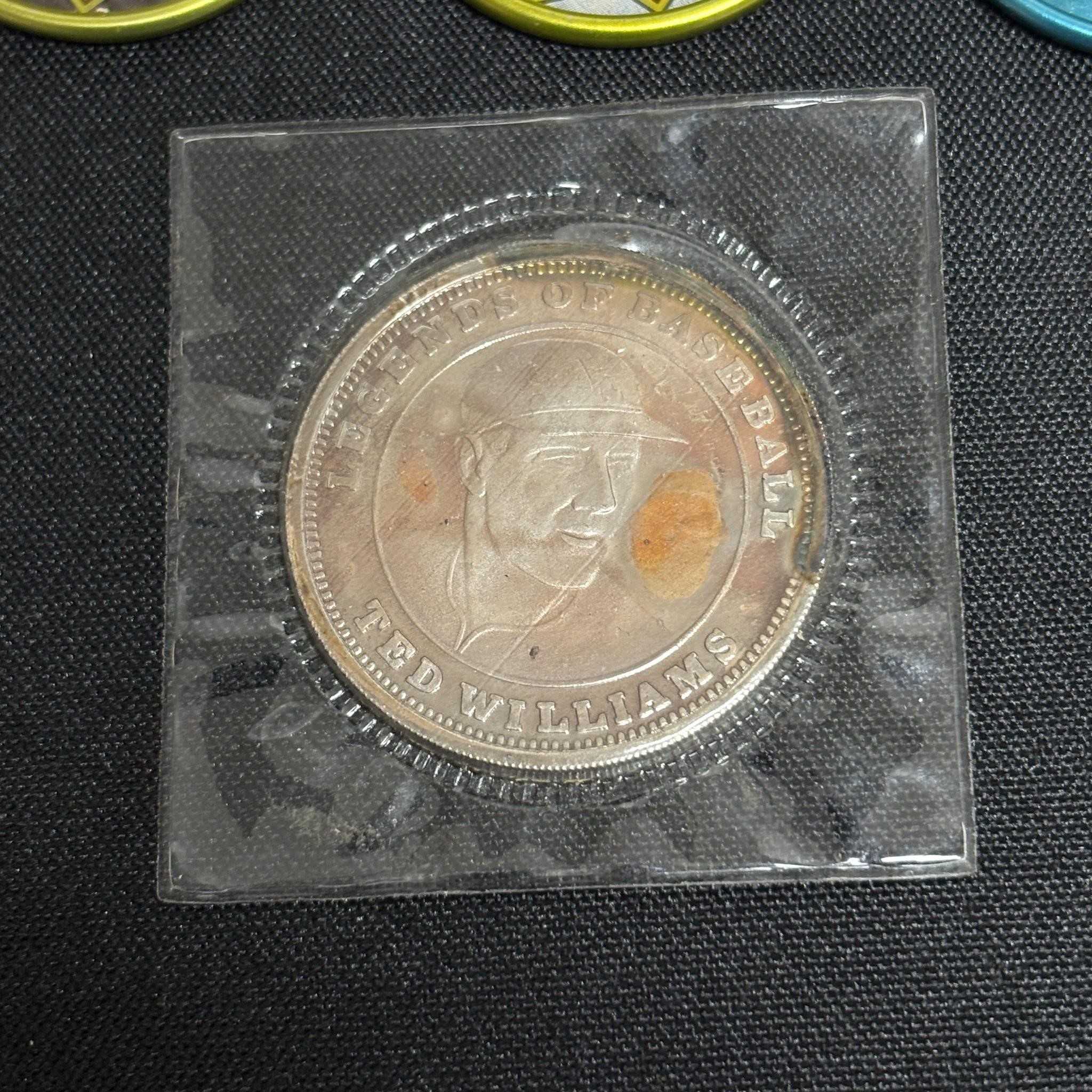 Large lot of baseball coins, includes topps coins, promo 3-D coins, and Ted Williams Hall of Fame 500 Club Coin. All items are sold as is. Please look at pictures carefully to determine what you believe are the condition of each lot. By choosing which card to use to register to bid, you authorize us to use the card on file that you used at the time of registration.at the end of the auction to pay for any lots and shipping you won. Happy Bidding and Best of luck! We offer in-house shipping. We are currently accepting consignments.
