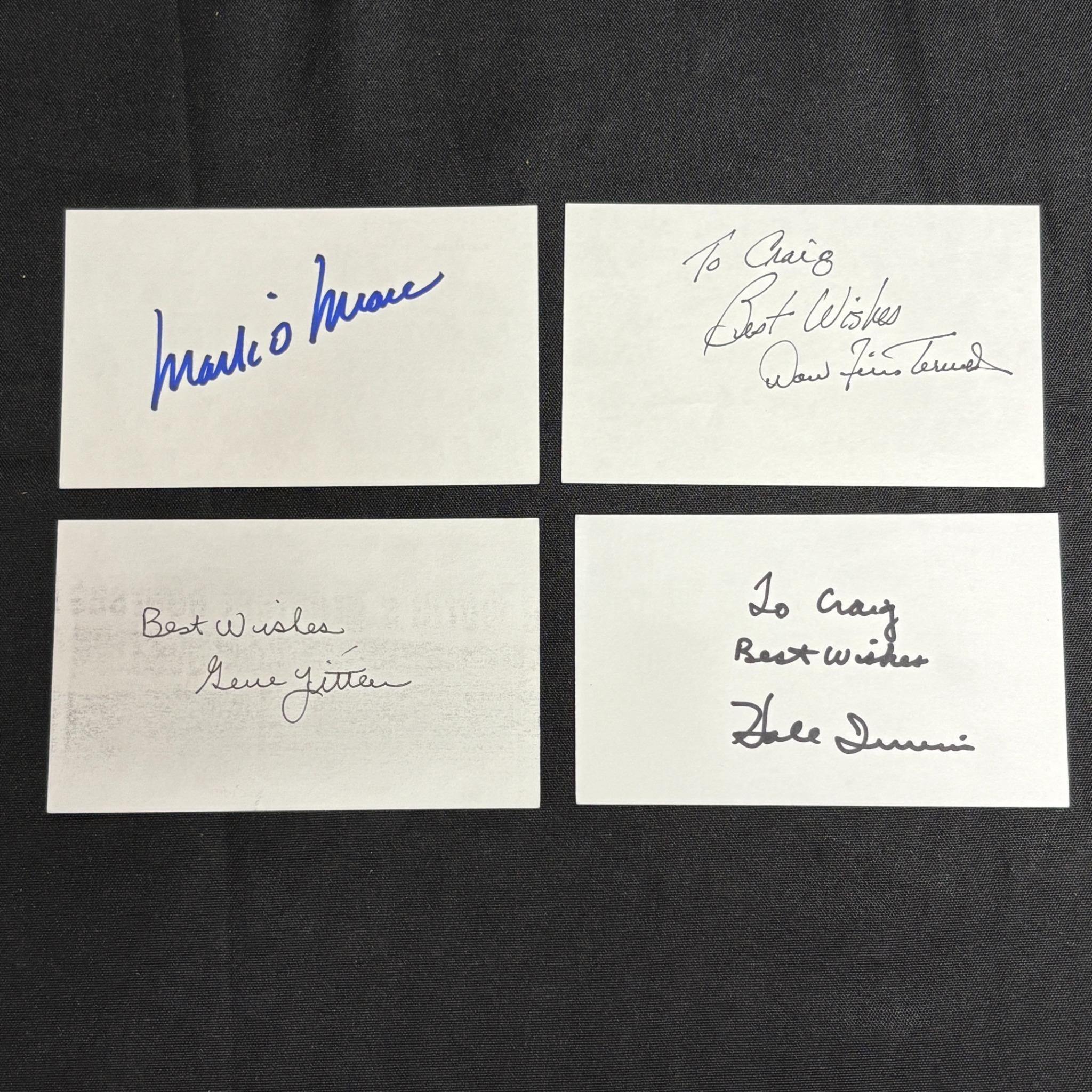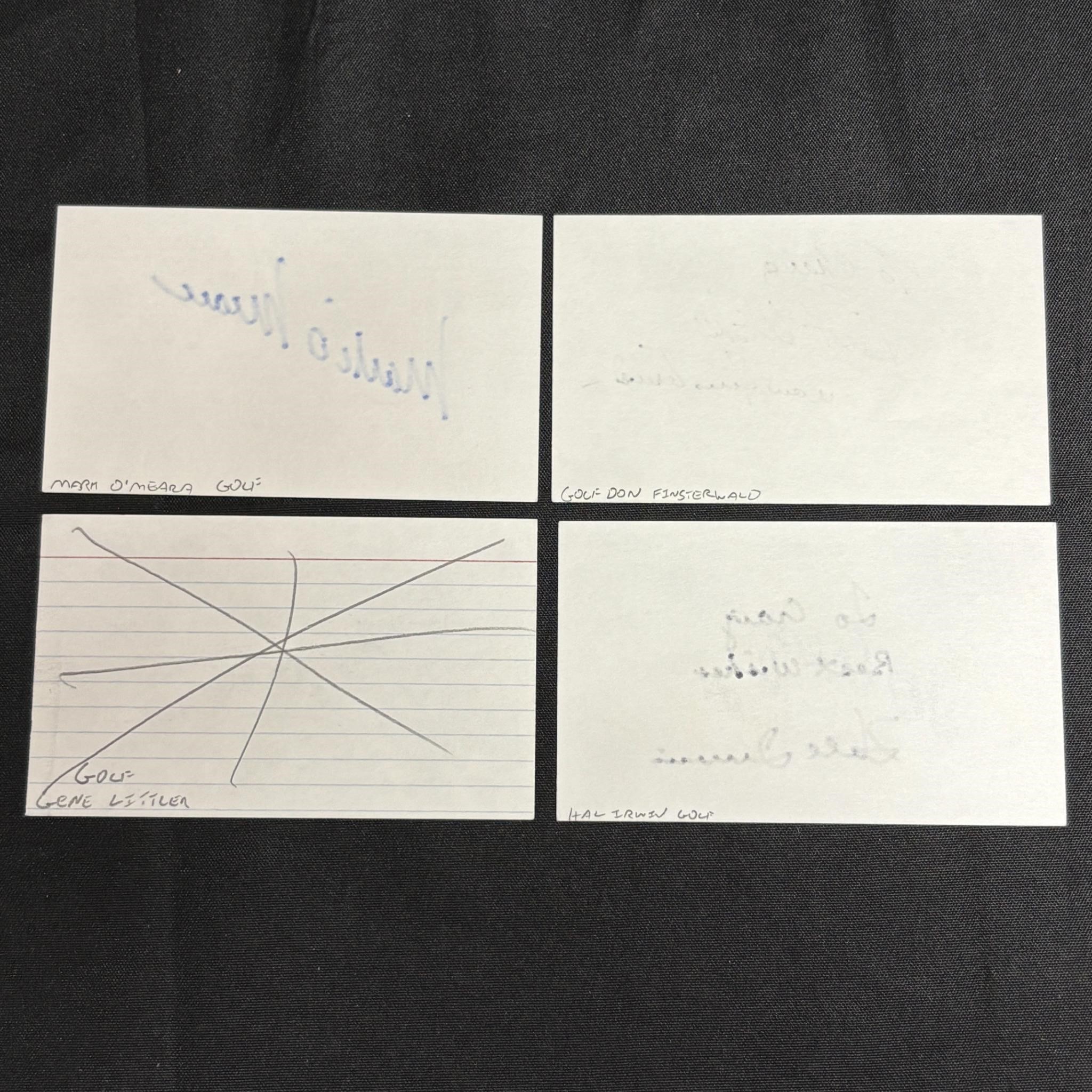 Lot of signatures from professional Golfers. Includes Mark O’Meara, Gene Littler, Don Finsterwald, and Hal Irwin. All items are sold as is. Please look at pictures carefully to determine what you believe are the condition of each lot. By choosing which card to use to register to bid, you authorize us to use the card on file that you used at the time of registration.at the end of the auction to pay for any lots and shipping you won. Happy Bidding and Best of luck! We offer in-house shipping. We are currently accepting consignments.