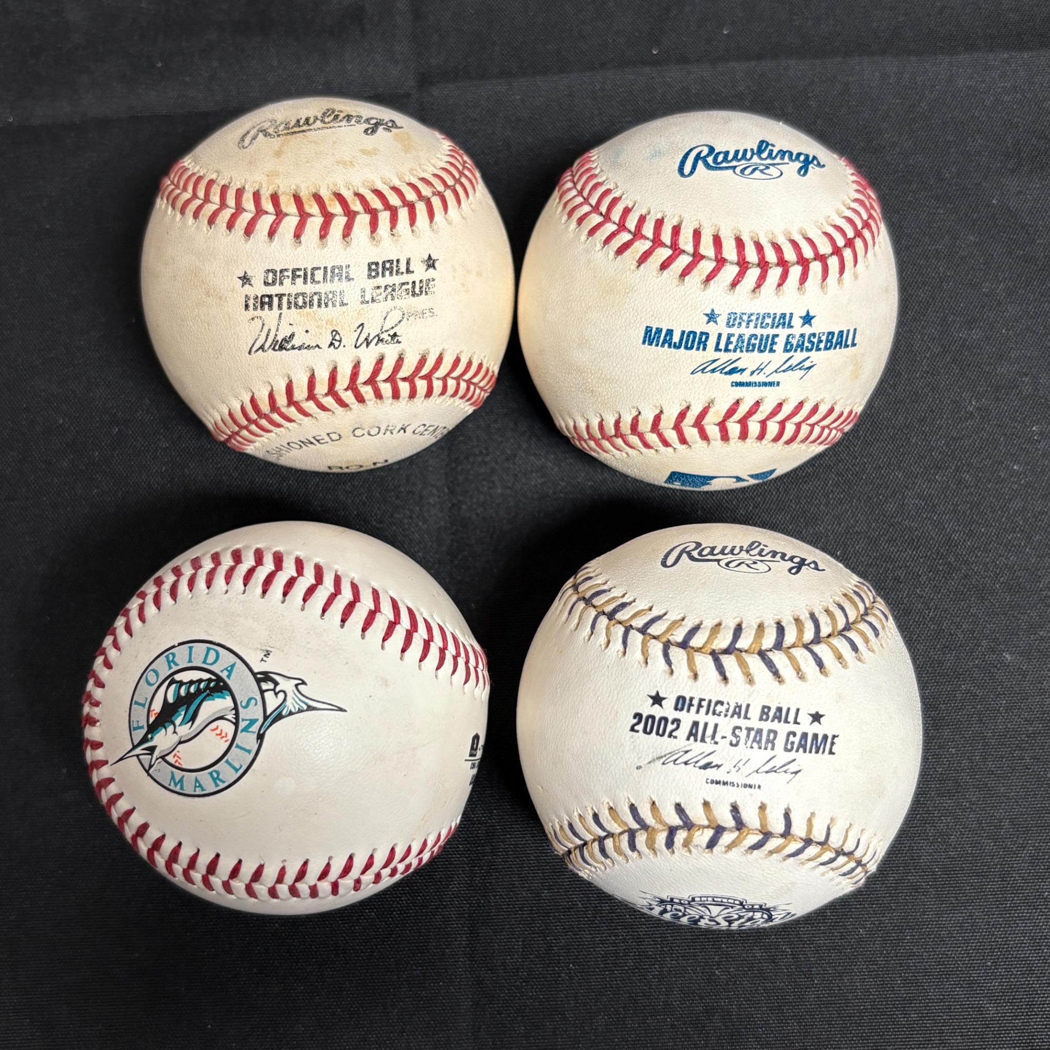 Baseballs Signed by 2003 Marlins World Series Players Jeff Conine, Dontrelle Willis, Luis Castillo, and Benito Santiago. All items are sold as is. Please look at pictures carefully to determine what you believe are the condition of each lot. By choosing which card to use to register to bid, you authorize us to use the card on file that you used at the time of registration.at the end of the auction to pay for any lots and shipping you won. Happy Bidding and Best of luck! We offer in-house shipping. We are currently accepting consignments.
