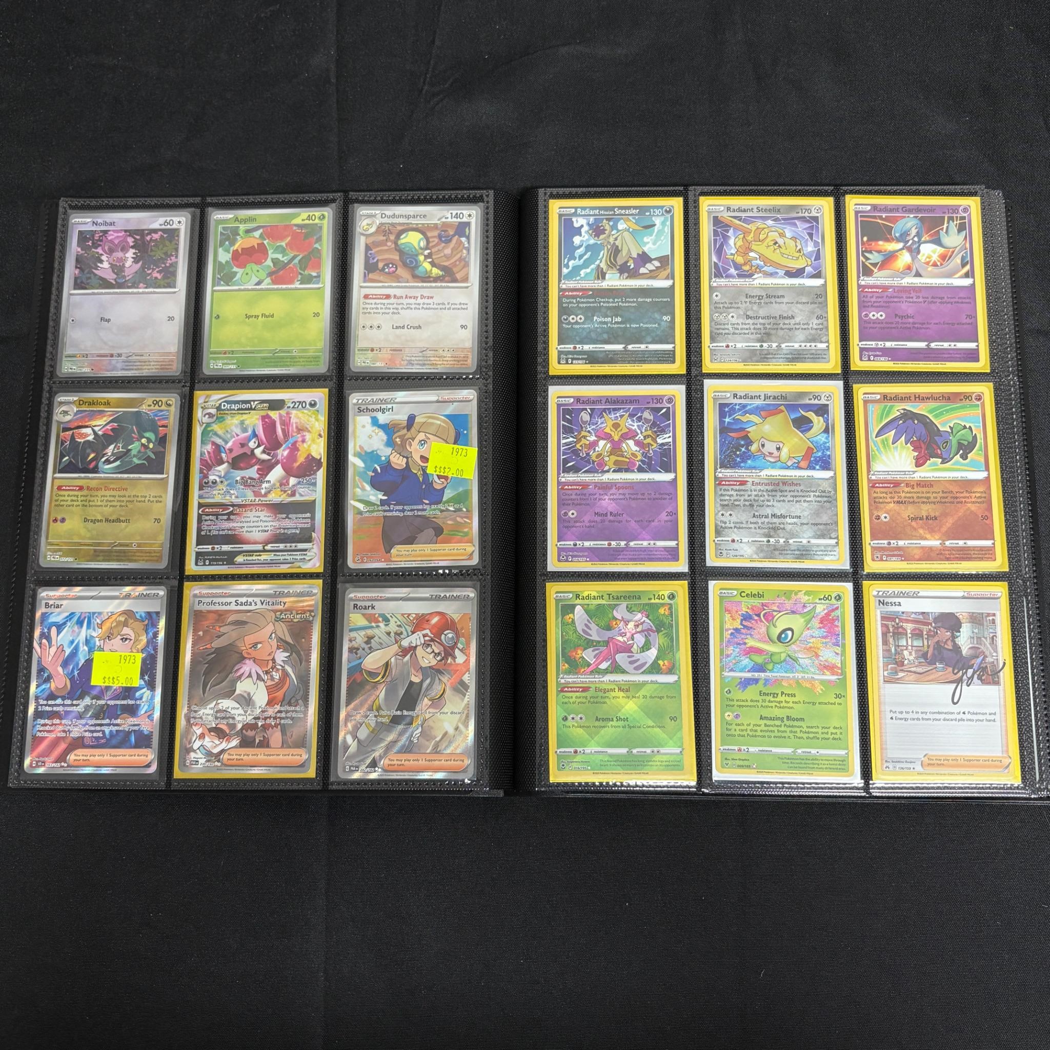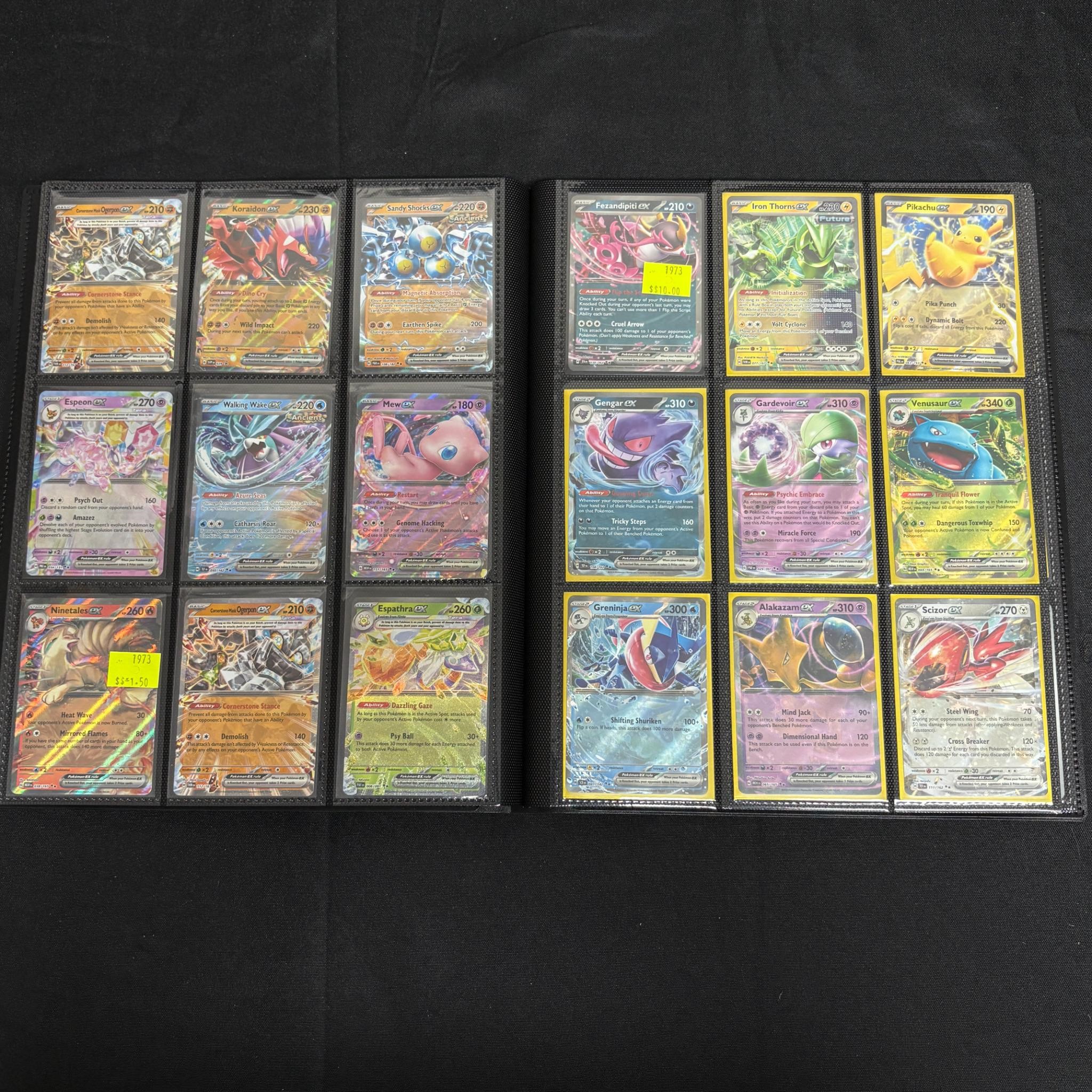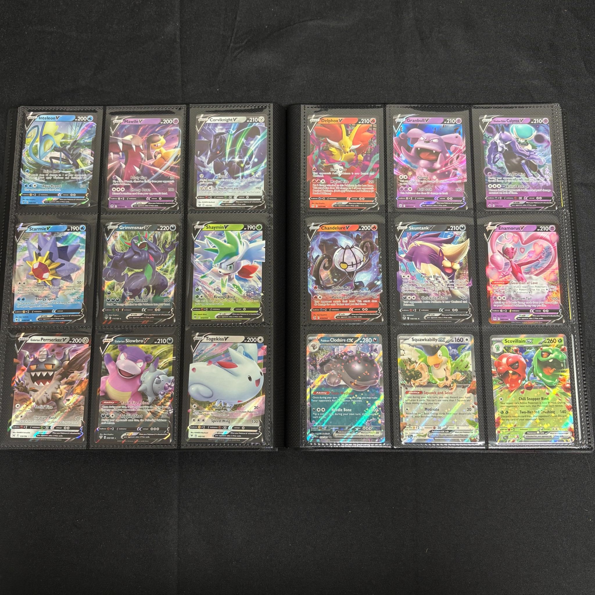 Modern Pokemon Card Binder filled with golds, rainbow, shiny, Illustration Rares, Special Illustration Rares, Promos, and more. All hits are photographed. All items are sold as is. Please look at pictures carefully to determine what you believe are the condition of each lot. By choosing which card to use to register to bid, you authorize us to use the card on file that you used at the time of registration.at the end of the auction to pay for any lots and shipping you won. Happy Bidding and Best of luck! We offer in-house shipping. We are currently accepting consignments.