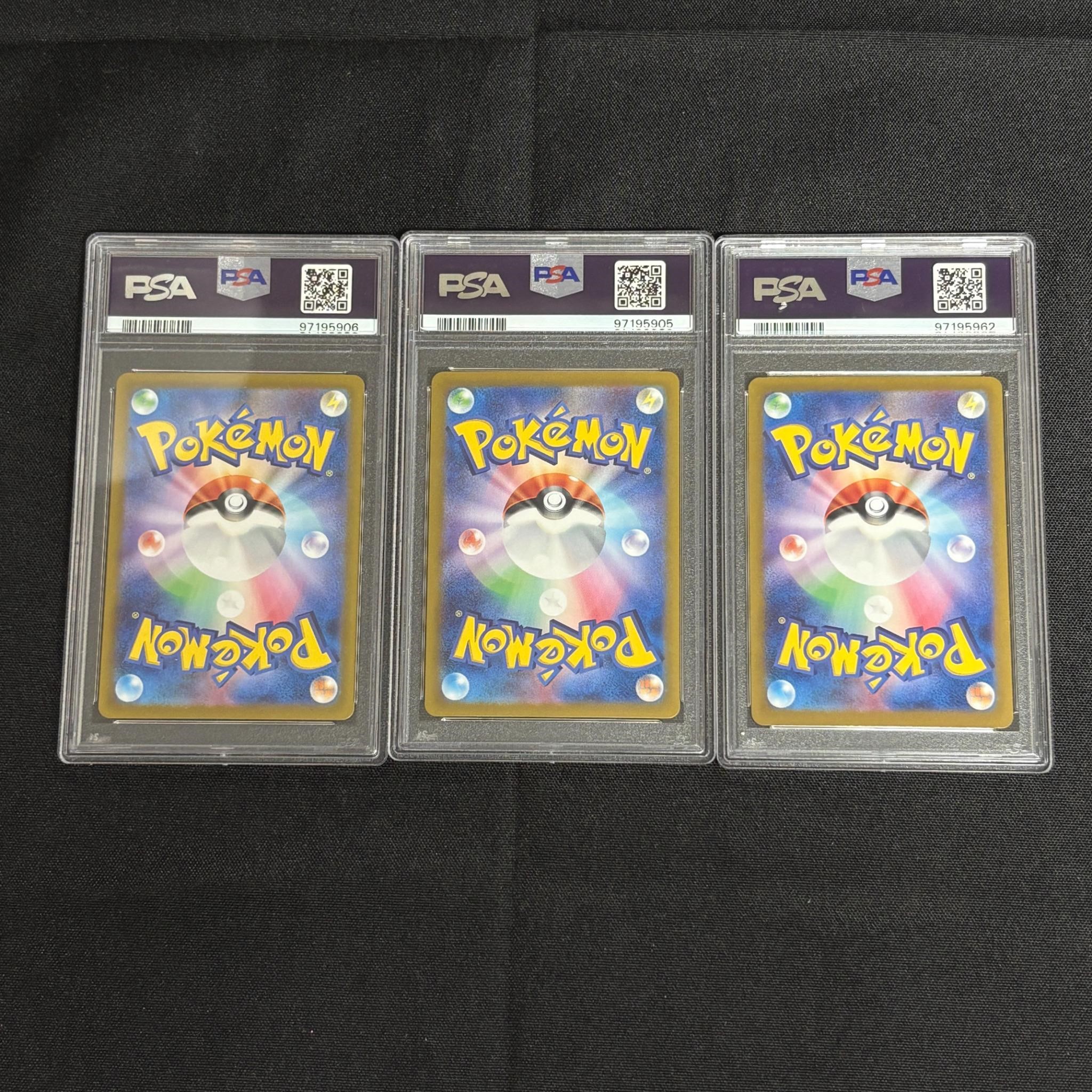 PSA 10 Squirtle #170 Art Rare, PSA 10 Wartortle #171 Art Rare, PSA 10 Blastoise EX #202 Special Art Rare Japanese 151 Pokemon Cards. All items are sold as is. Please look at pictures carefully to determine what you believe are the condition of each lot. By choosing which card to use to register to bid, you authorize us to use the card on file that you used at the time of registration.at the end of the auction to pay for any lots and shipping you won. Happy Bidding and Best of luck! We offer in-house shipping. We are currently accepting consignments.