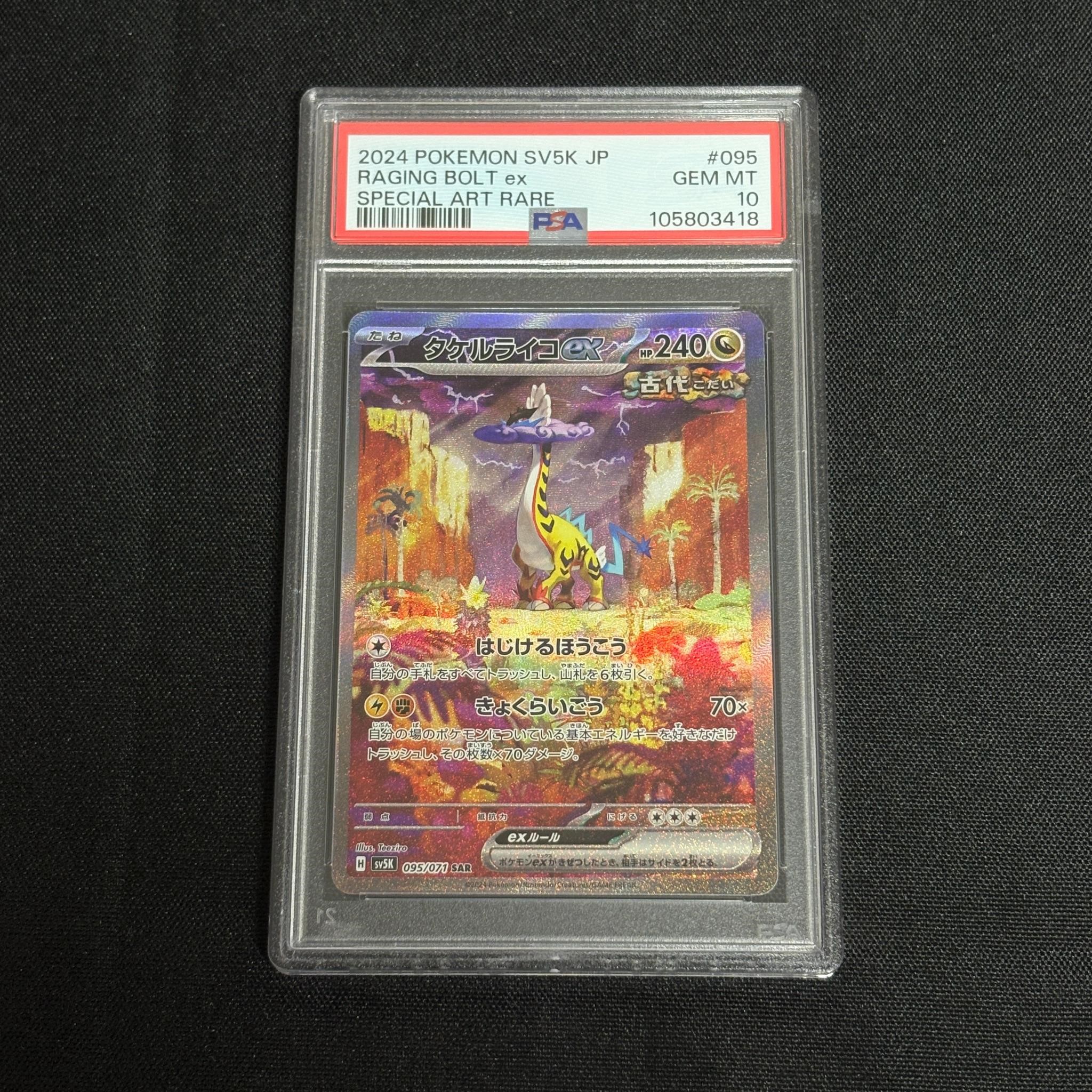 PSA 10 Raging Bolt EX #95 Special Art Rare Japanese Pokemon Card. All items are sold as is. Please look at pictures carefully to determine what you believe are the condition of each lot. By choosing which card to use to register to bid, you authorize us to use the card on file that you used at the time of registration.at the end of the auction to pay for any lots and shipping you won. Happy Bidding and Best of luck! We offer in-house shipping. We are currently accepting consignments.