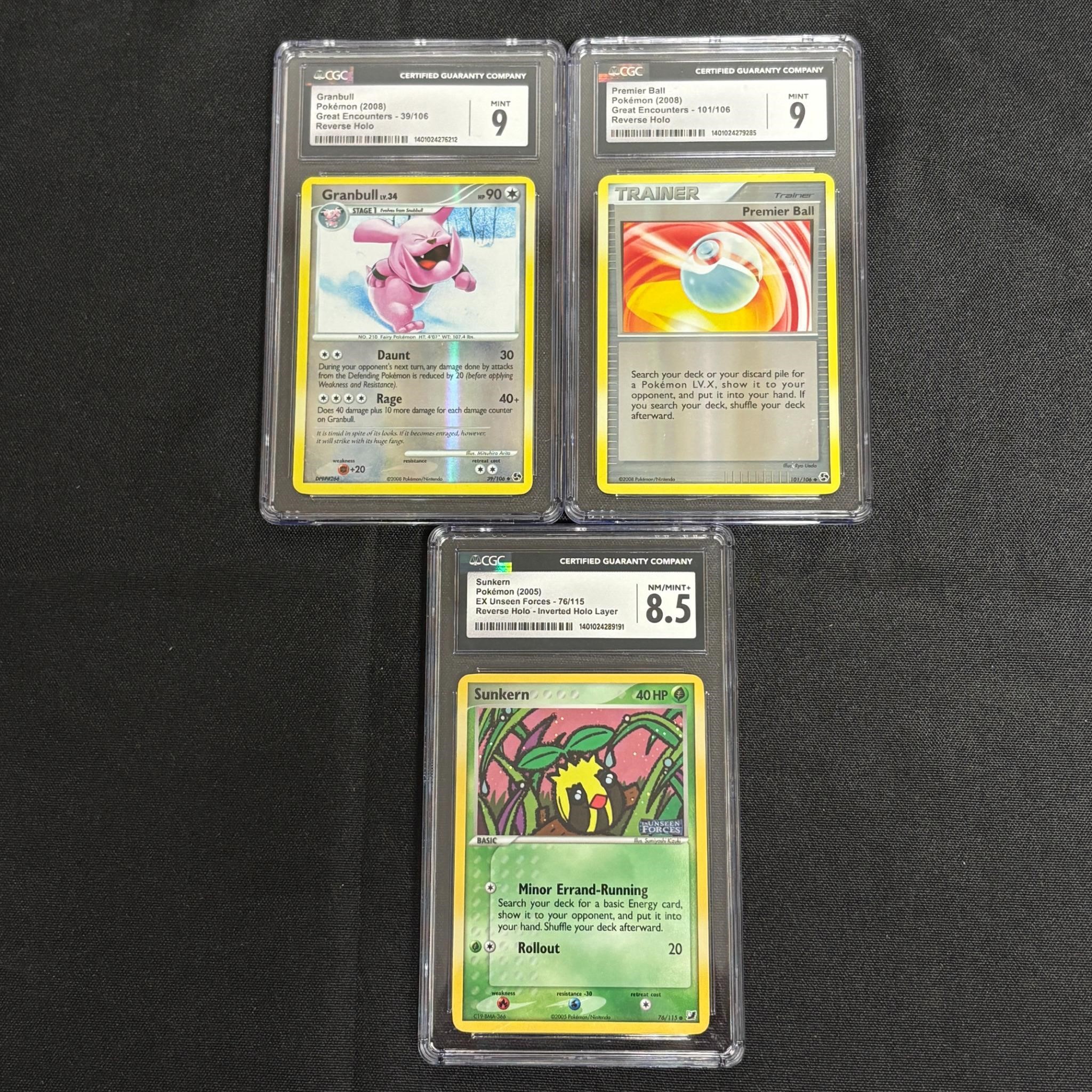 Lot of CGC graded Pokemon cards. Older. Includes Sunkern Reverse holo Unseen Forces Stamped Card. All items are sold as is. Please look at pictures carefully to determine what you believe are the condition of each lot. By choosing which card to use to register to bid, you authorize us to use the card on file that you used at the time of registration.at the end of the auction to pay for any lots and shipping you won. Happy Bidding and Best of luck! We offer in-house shipping. We are currently accepting consignments.