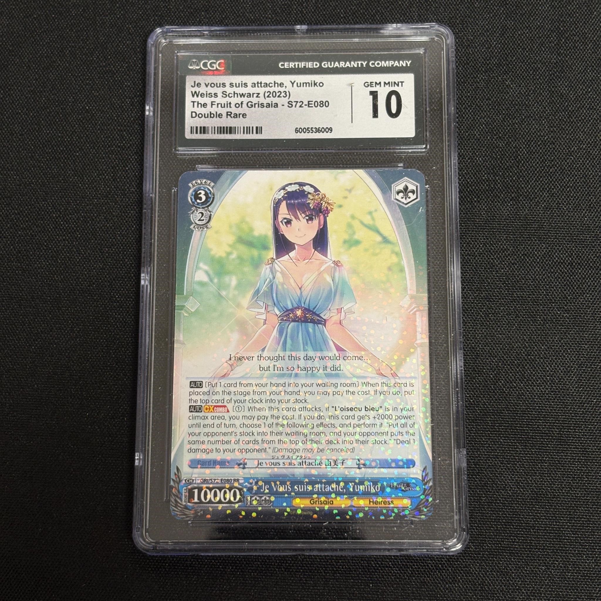 CGC 10 Yumiko Fruit of Grisaia Weiss Schwarz Double Rare Foil Anime Card. All items are sold as is. Please look at pictures carefully to determine what you believe are the condition of each lot. By choosing which card to use to register to bid, you authorize us to use the card on file that you used at the time of registration.at the end of the auction to pay for any lots and shipping you won. Happy Bidding and Best of luck! We offer in-house shipping. We are currently accepting consignments.