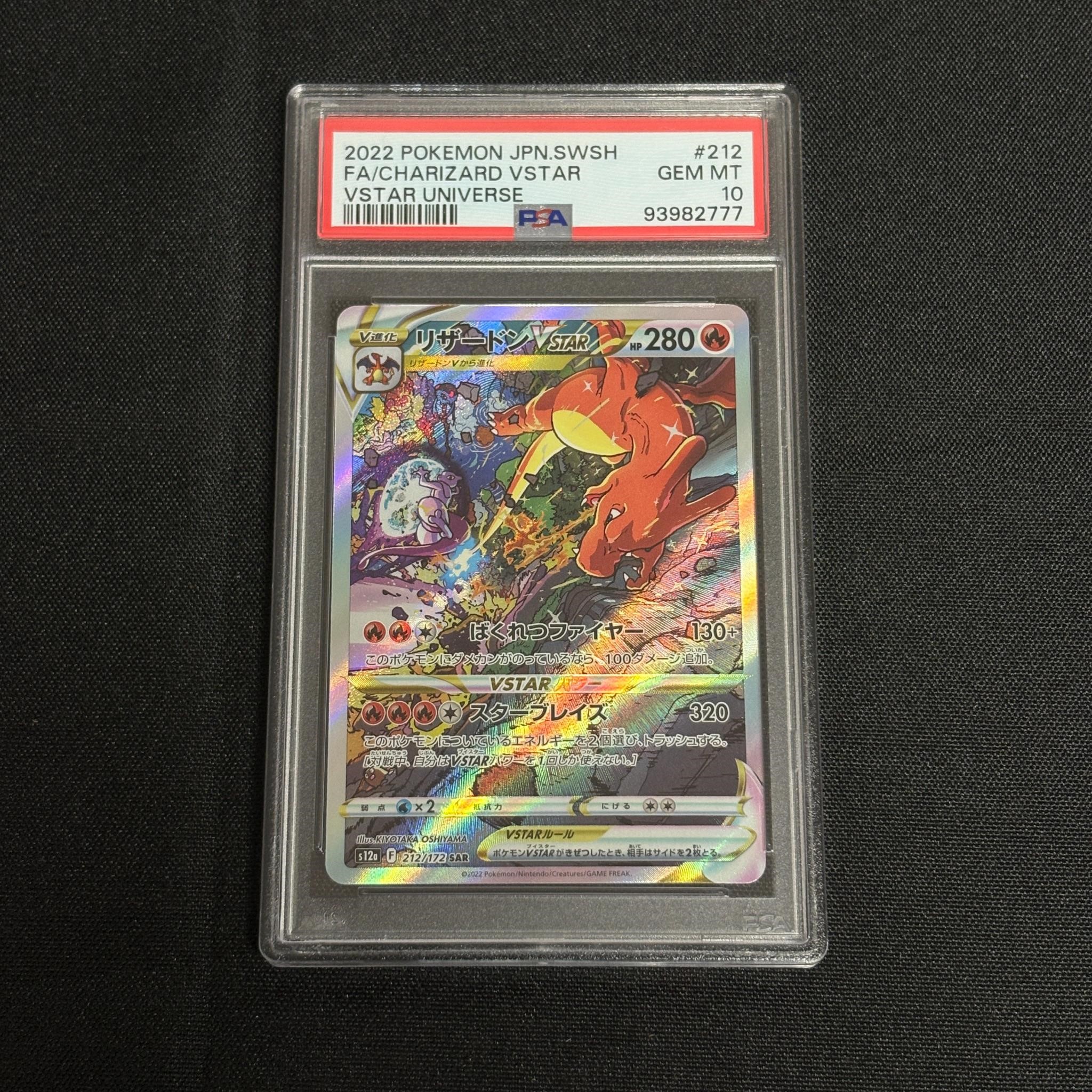 PSA 10 Charizard VSTAR #212 Special Art Rare Japanese VSTAR Universe Pokemon Card. All items are sold as is. Please look at pictures carefully to determine what you believe are the condition of each lot. By choosing which card to use to register to bid, you authorize us to use the card on file that you used at the time of registration.at the end of the auction to pay for any lots and shipping you won. Happy Bidding and Best of luck! We offer in-house shipping. We are currently accepting consignments.