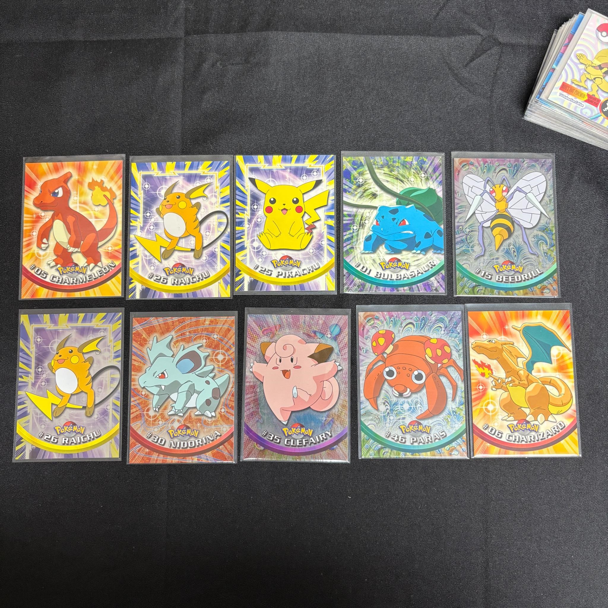 Large lot of Vintage Topps Pokemon Cards. Includes Foil Cards Like Raichu and Beedrill as well as Blue Label Charizard. All items are sold as is. Please look at pictures carefully to determine what you believe are the condition of each lot. By choosing which card to use to register to bid, you authorize us to use the card on file that you used at the time of registration.at the end of the auction to pay for any lots and shipping you won. Happy Bidding and Best of luck! We offer in-house shipping. We are currently accepting consignments.