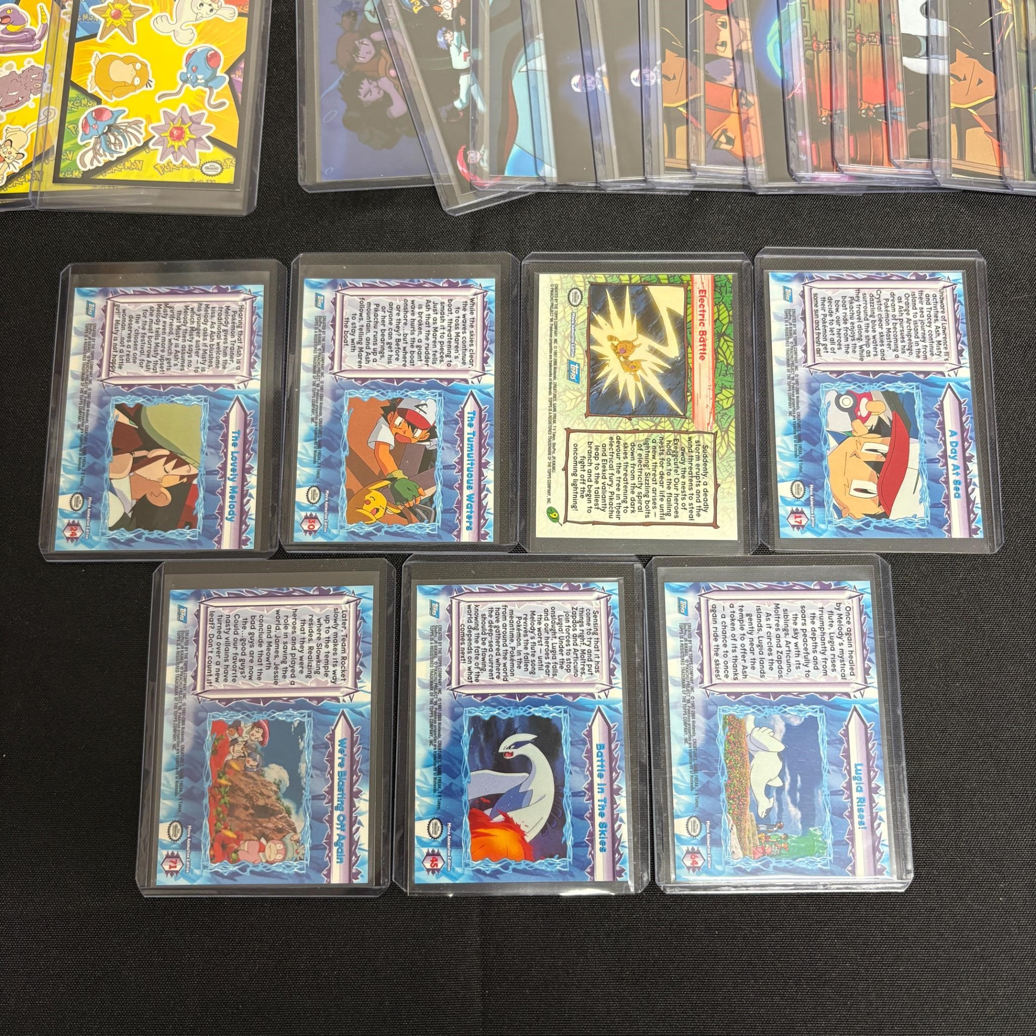 Large lot of Topps Movie (Mewtwo Strikes Back, Pokemon 2000, and Pikachu Vacation), Tv Series Pokemon Cards. Includes Foils, Lugia Rises Card, ++ All items are sold as is. Please look at pictures carefully to determine what you believe are the condition of each lot. By choosing which card to use to register to bid, you authorize us to use the card on file that you used at the time of registration.at the end of the auction to pay for any lots and shipping you won. Happy Bidding and Best of luck! We offer in-house shipping. We are currently accepting consignments.