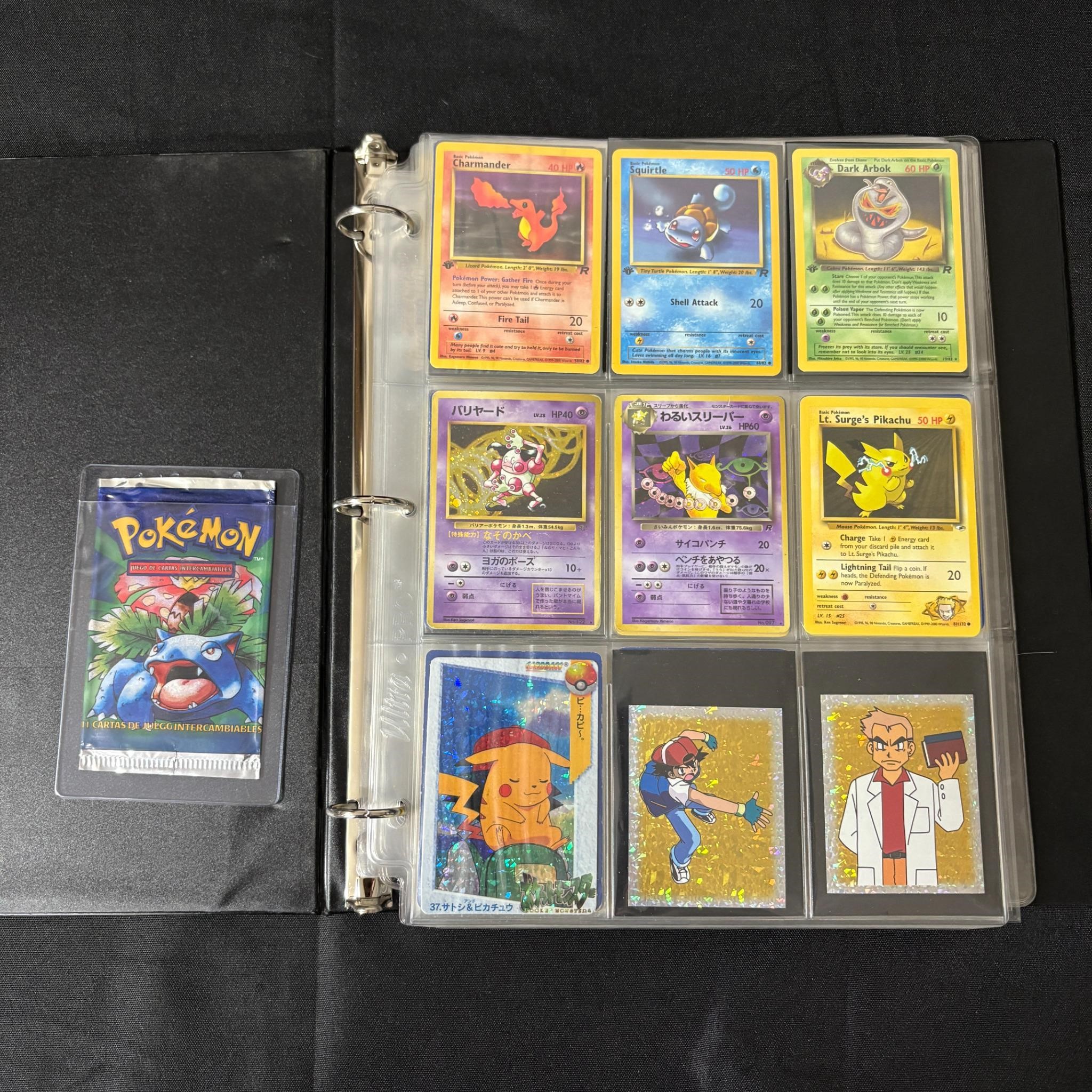 Vintage Pokemon Card Binder. Includes 1st Editions, Vintage Sticker Cards, and 1st editions. Base Set – E Reader Pokemon Cards. Both English and Japanese. Includes Vintage Base Set Empty Spanish booster pack. Venusaur Art. All items are sold as is. Please look at pictures carefully to determine what you believe are the condition of each lot. By choosing which card to use to register to bid, you authorize us to use the card on file that you used at the time of registration.at the end of the auction to pay for any lots and shipping you won. Happy Bidding and Best of luck! We offer in-house shipping. We are currently accepting consignments.