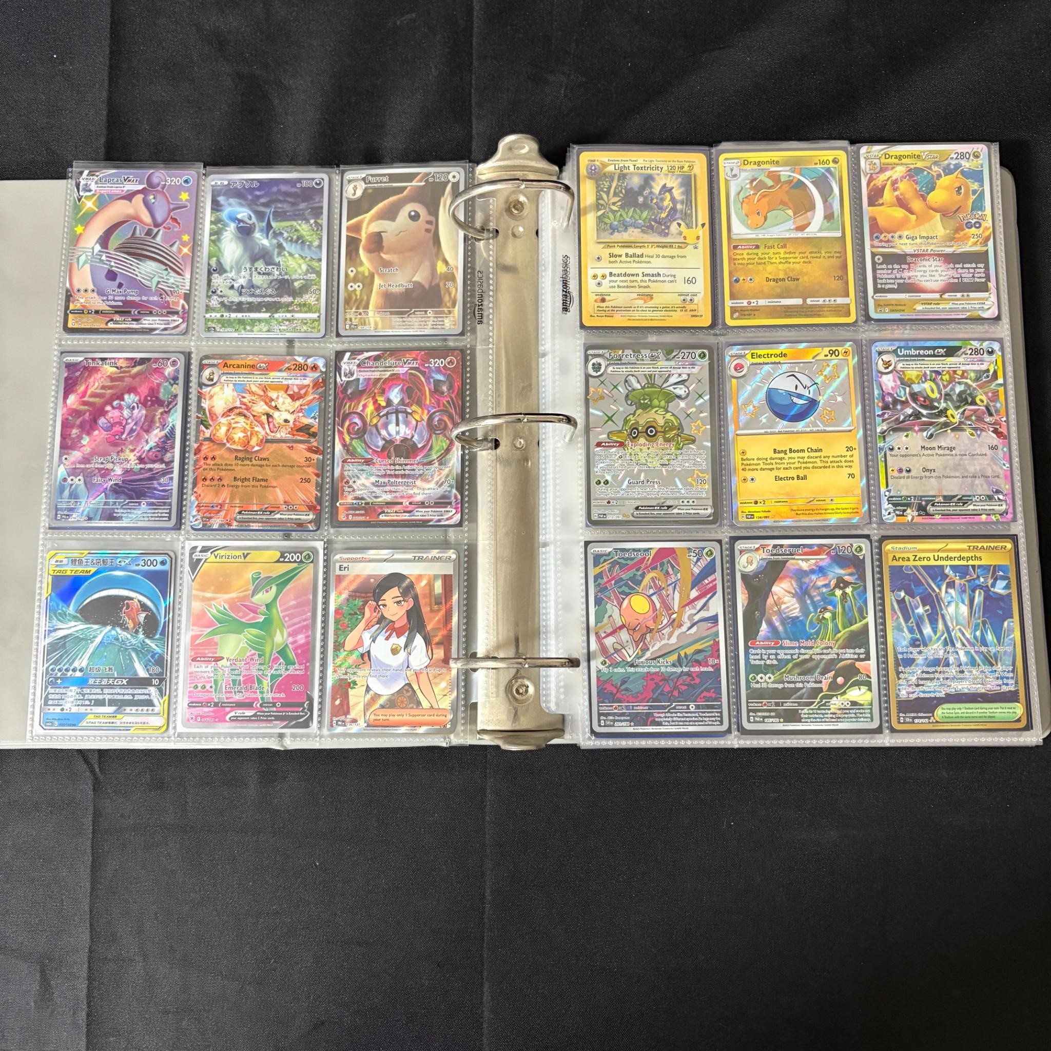 Nice modern Pokemon Card Binder, Includes Promos, GX, EX Illustration Rares, Art Rares, Pokemon League Stamped Cards and more. All Hits are photographed, remainder of the binder is holos, rev holos, and bulk. All items are sold as is. Please look at pictures carefully to determine what you believe are the condition of each lot. By choosing which card to use to register to bid, you authorize us to use the card on file that you used at the time of registration.at the end of the auction to pay for any lots and shipping you won. Happy Bidding and Best of luck! We offer in-house shipping. We are currently accepting consignments.