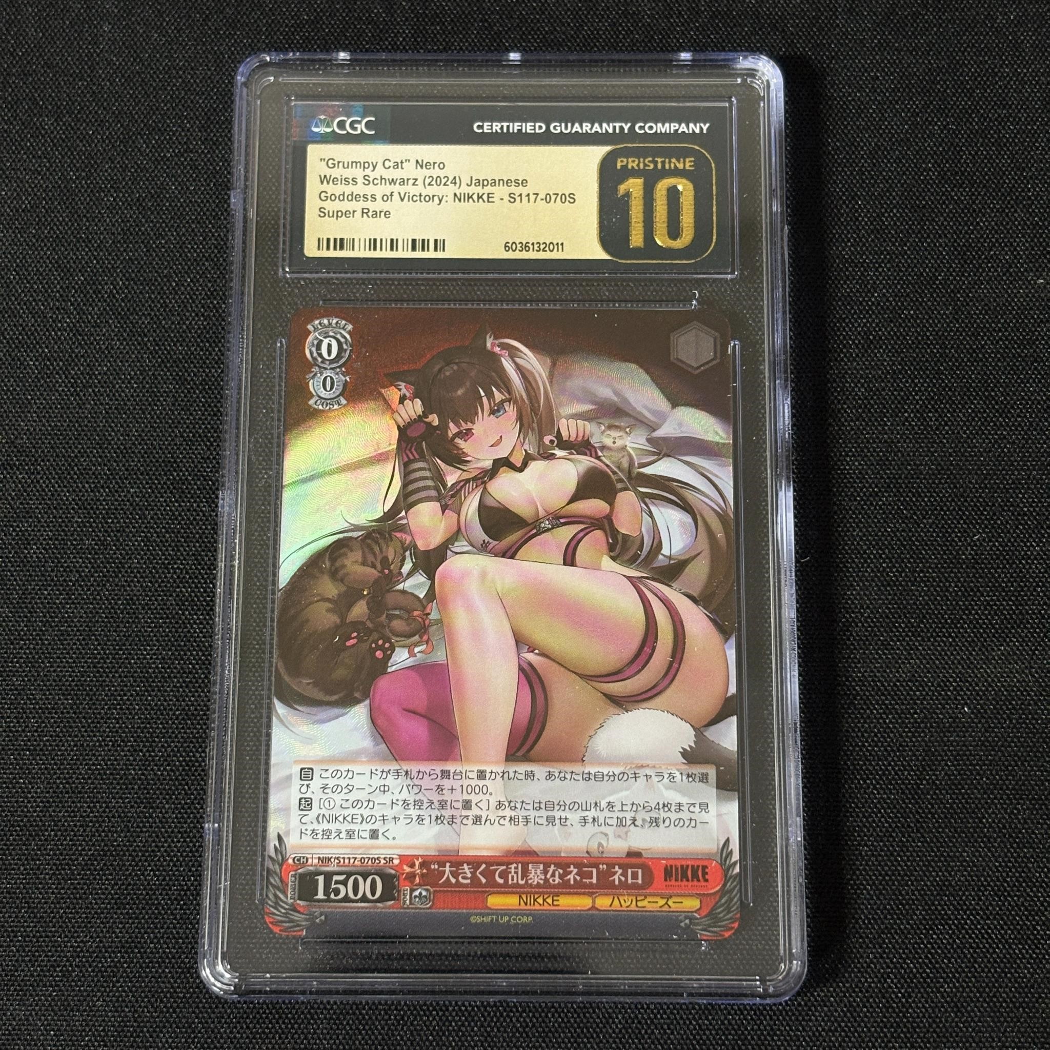 CGC Pristine 10 Grumpy Cat Nero Super Rare Weiss Schwarz Goddess of Victory NIKKE Anime Card. All items are sold as is. Please look at pictures carefully to determine what you believe are the condition of each lot. By choosing which card to use to register to bid, you authorize us to use the card on file that you used at the time of registration.at the end of the auction to pay for any lots and shipping you won. Happy Bidding and Best of luck! We offer in-house shipping. We are currently accepting consignments.