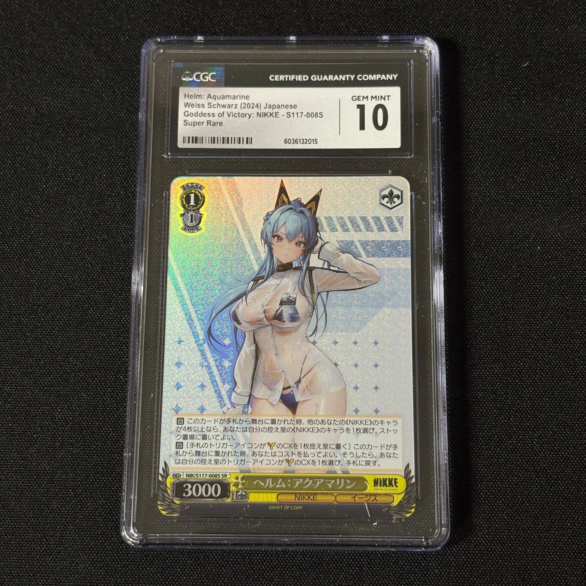 CGC 10 Helm: Aquamarine Super Rare Weiss Schwarz Goddess of Victory NIKKE Anime Trading Card. All items are sold as is. Please look at pictures carefully to determine what you believe are the condition of each lot. By choosing which card to use to register to bid, you authorize us to use the card on file that you used at the time of registration.at the end of the auction to pay for any lots and shipping you won. Happy Bidding and Best of luck! We offer in-house shipping. We are currently accepting consignments.