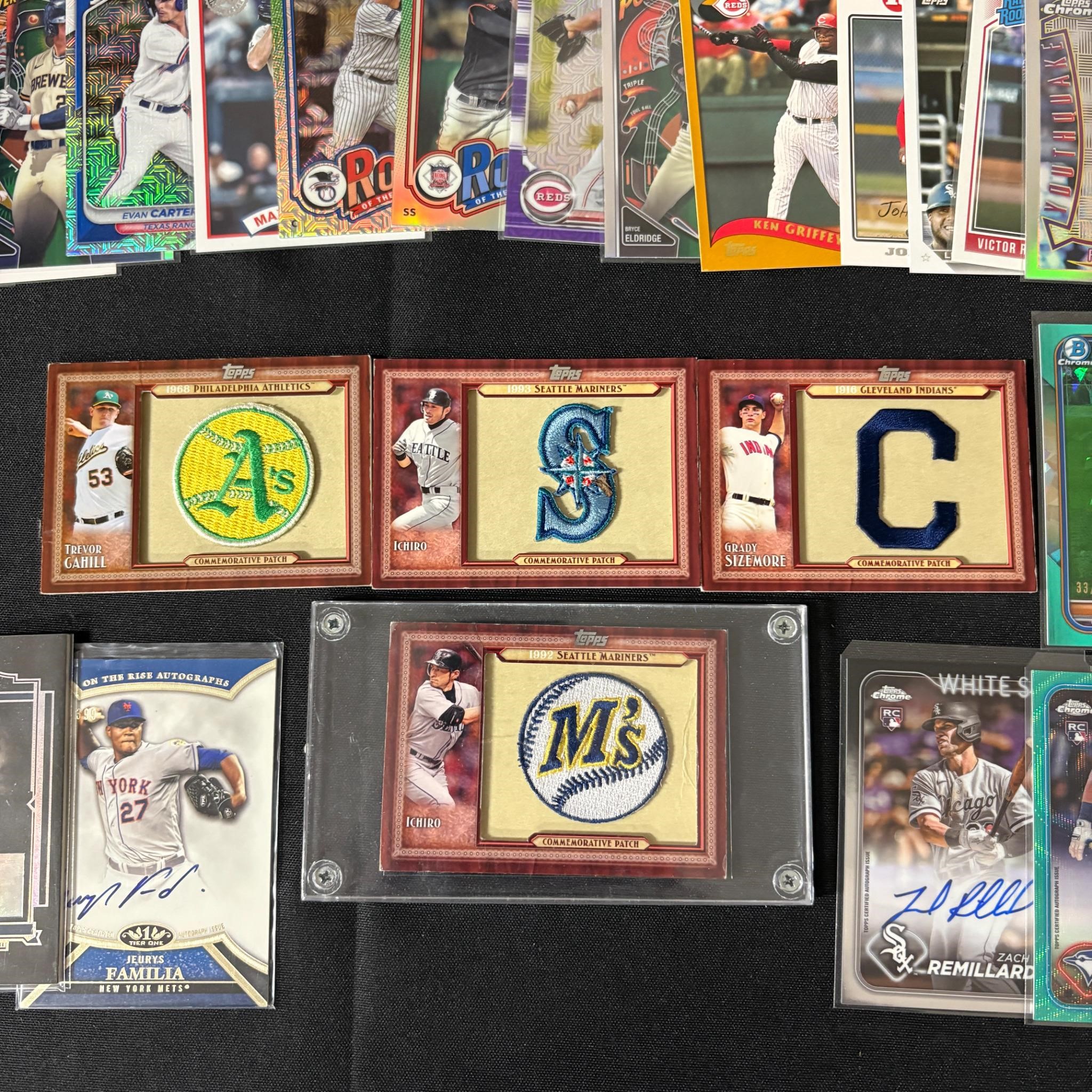 Large lot of Modern Baseball Cards. Includes Topps Patch Cards, and Auto Cards. All items are sold as is. Please look at pictures carefully to determine what you believe are the condition of each lot. By choosing which card to use to register to bid, you authorize us to use the card on file that you used at the time of registration.at the end of the auction to pay for any lots and shipping you won. Happy Bidding and Best of luck! We offer in-house shipping. We are currently accepting consignments.