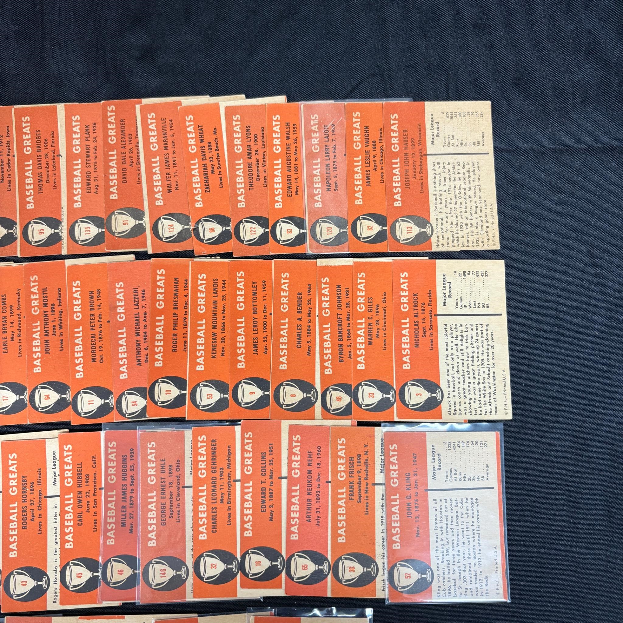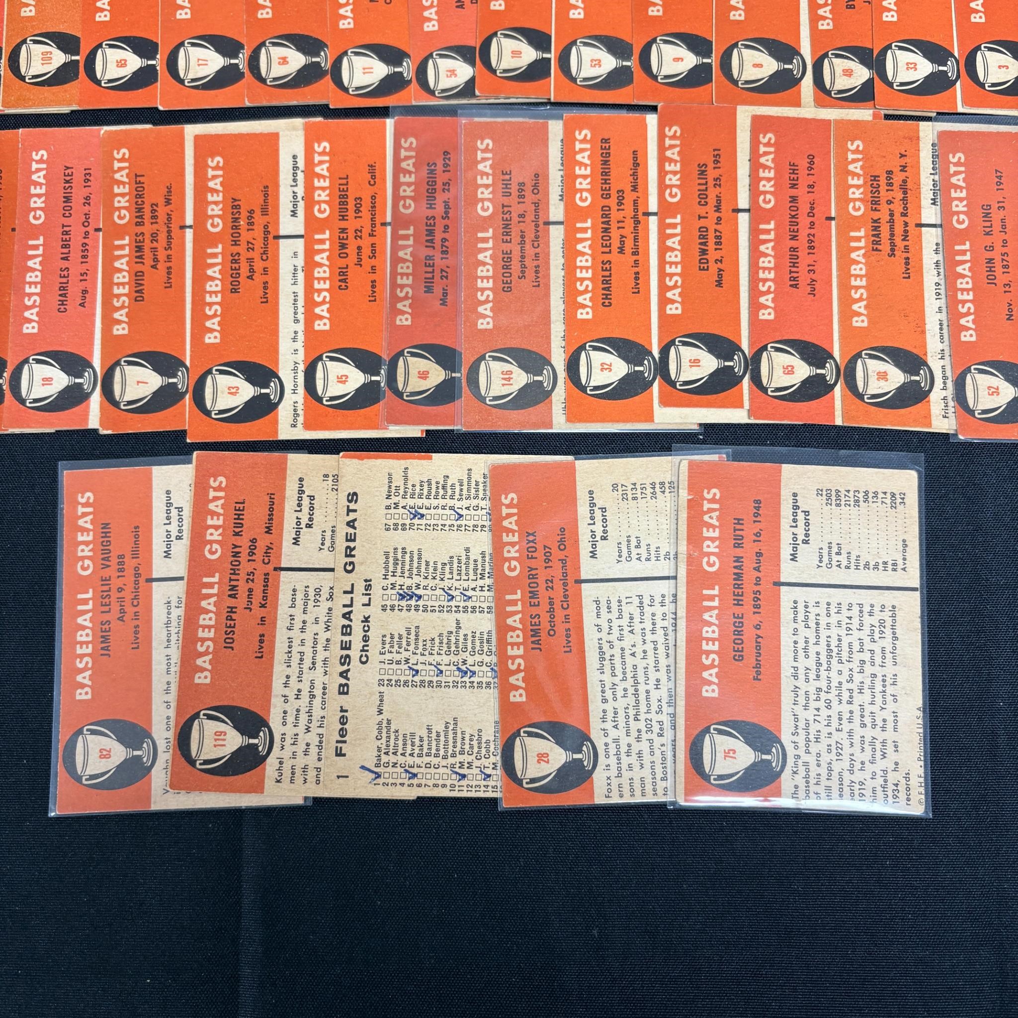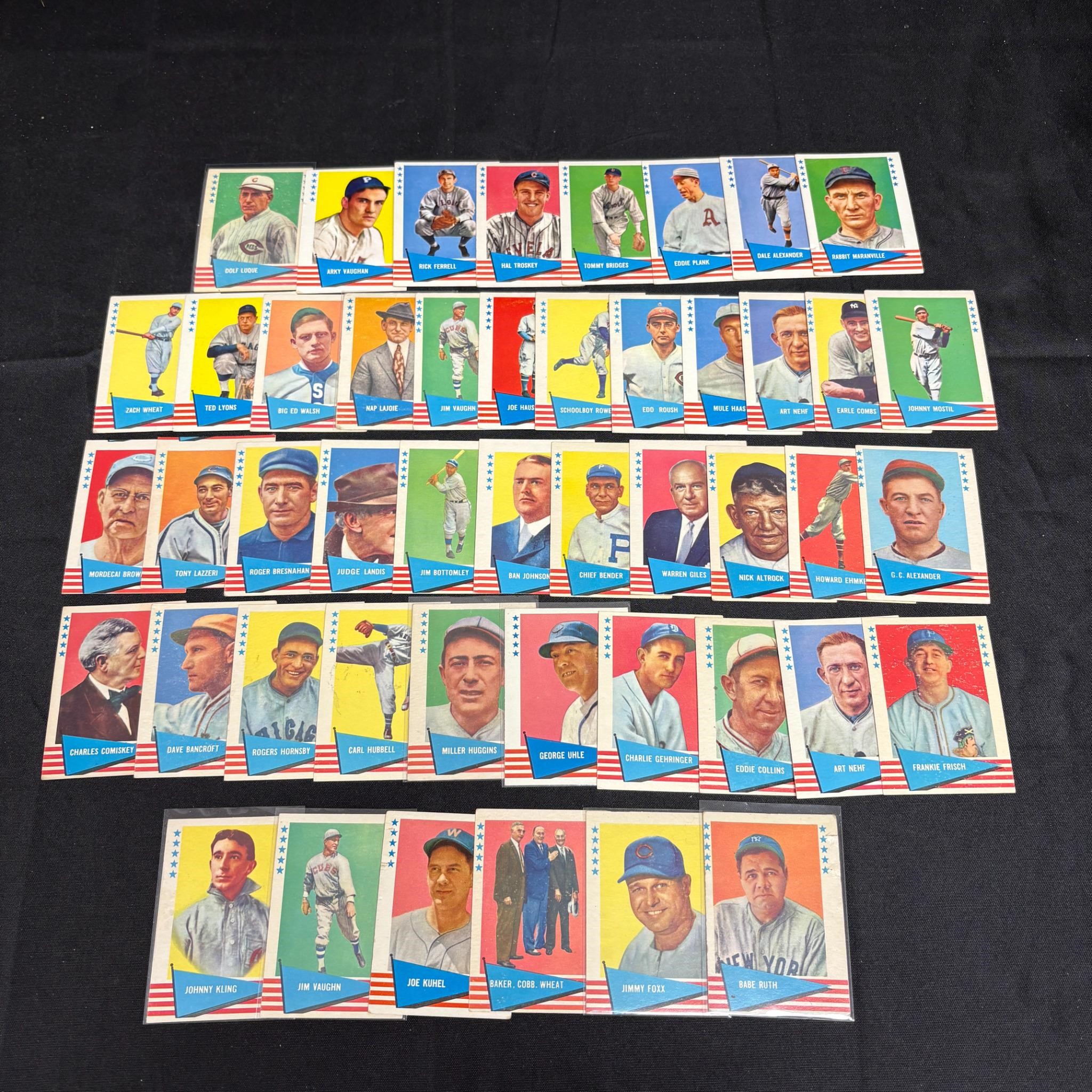 Large lot of 1961 Fleer Baseball Cards. Baseball Greats Cards Includes Babe Ruth Card All items are sold as is. Please look at pictures carefully to determine what you believe are the condition of each lot. By choosing which card to use to register to bid, you authorize us to use the card on file that you used at the time of registration.at the end of the auction to pay for any lots and shipping you won. Happy Bidding and Best of luck! We offer in-house shipping. We are currently accepting consignments.