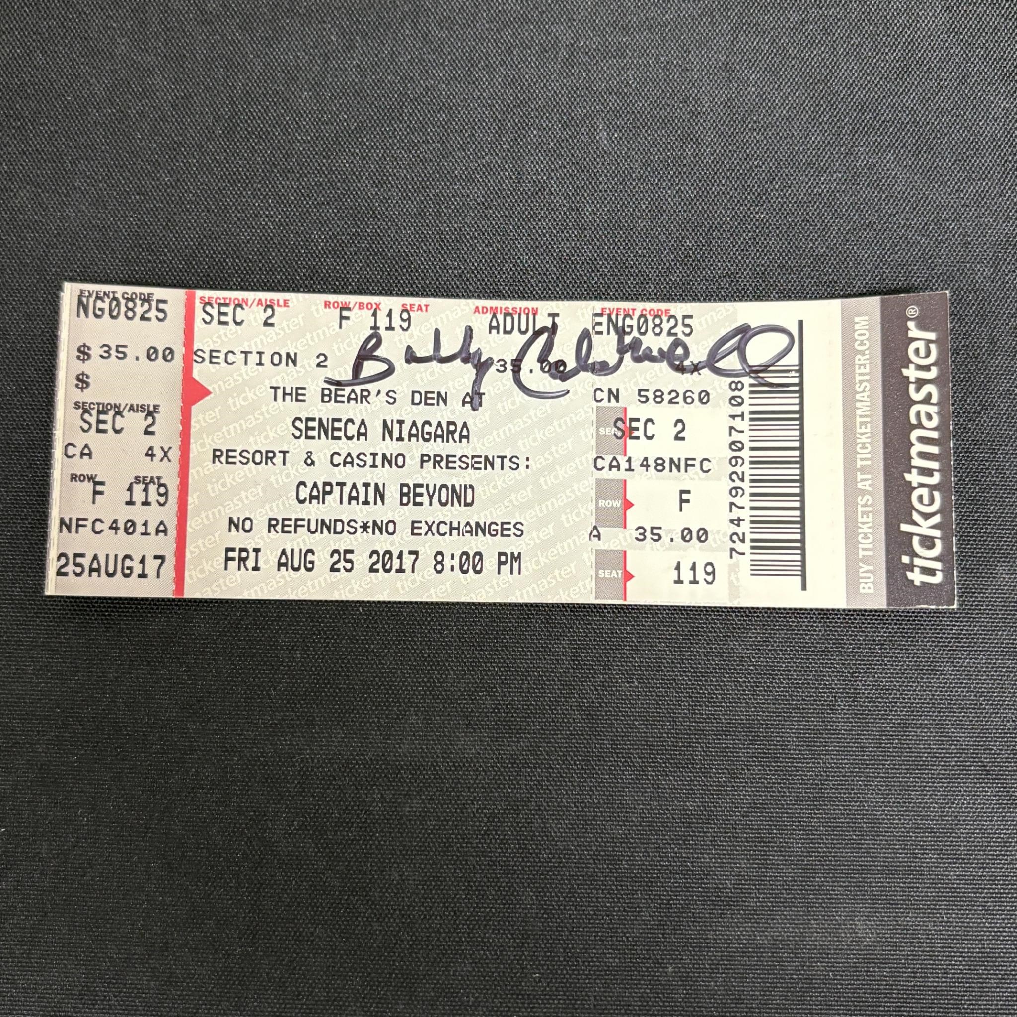 Captain Beyond Concert Ticket Signed by the Drummer Bobby Caldwell. All items are sold as is. Please look at pictures carefully to determine what you believe are the condition of each lot. By choosing which card to use to register to bid, you authorize us to use the card on file that you used at the time of registration.at the end of the auction to pay for any lots and shipping you won. Happy Bidding and Best of luck! We offer in-house shipping. We are currently accepting consignments.