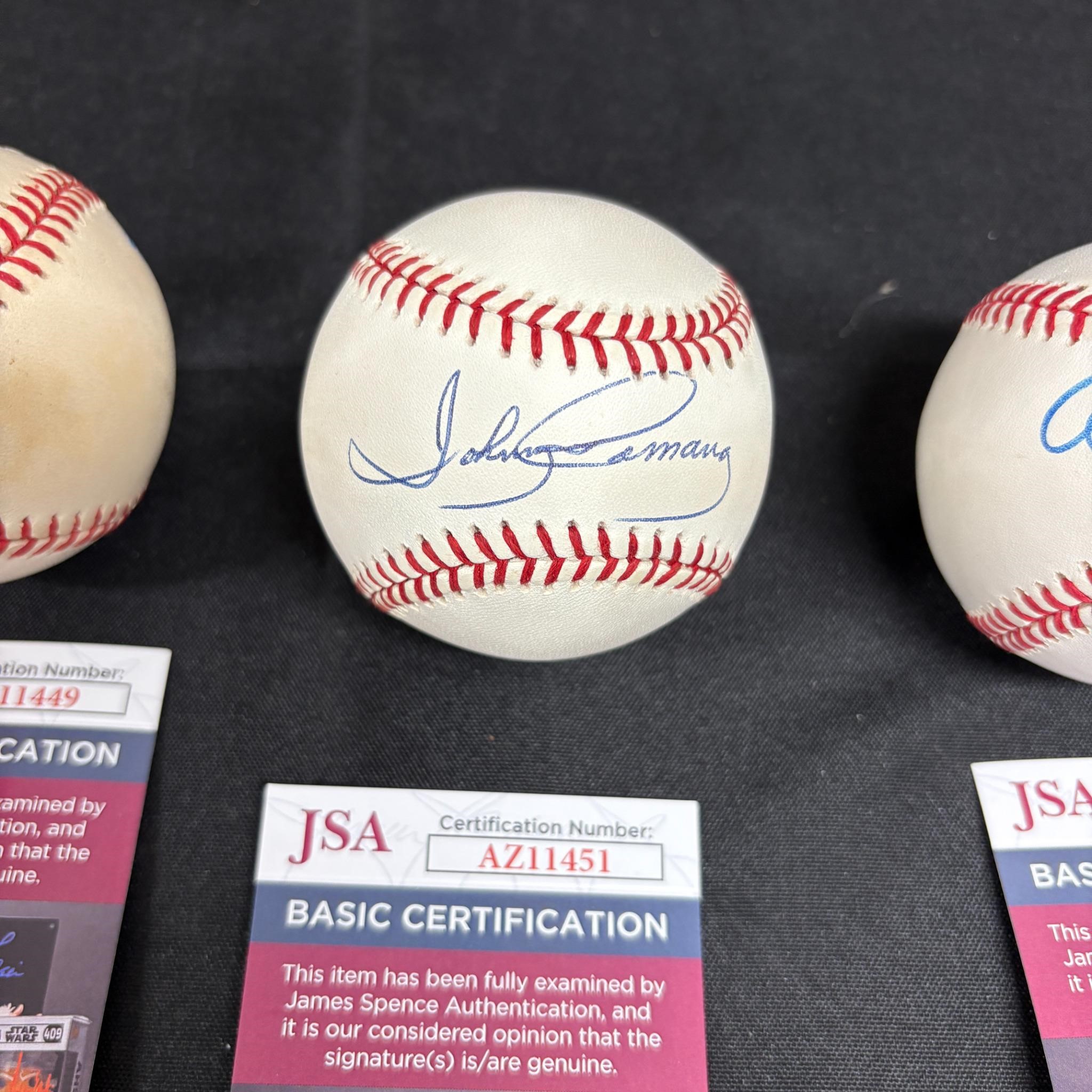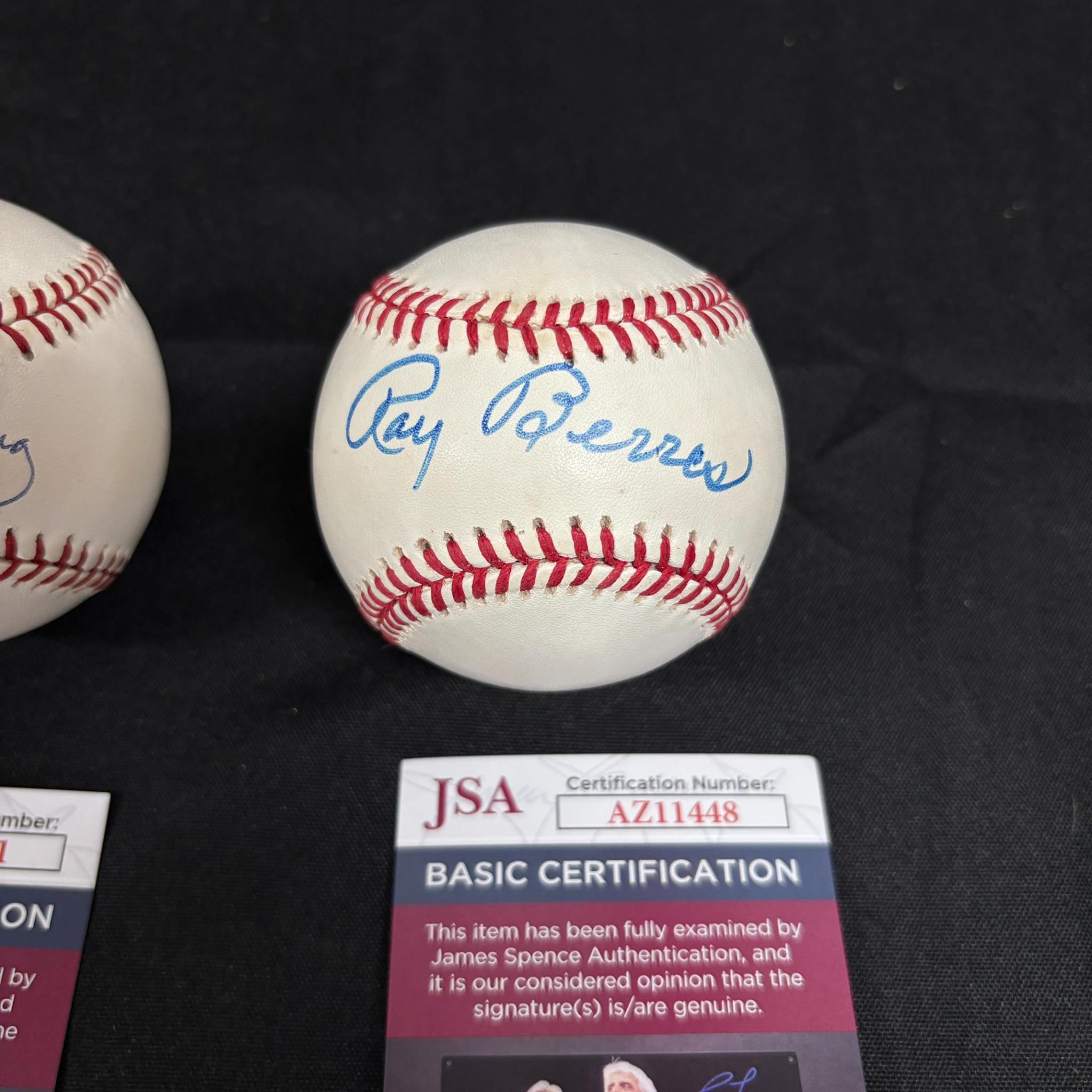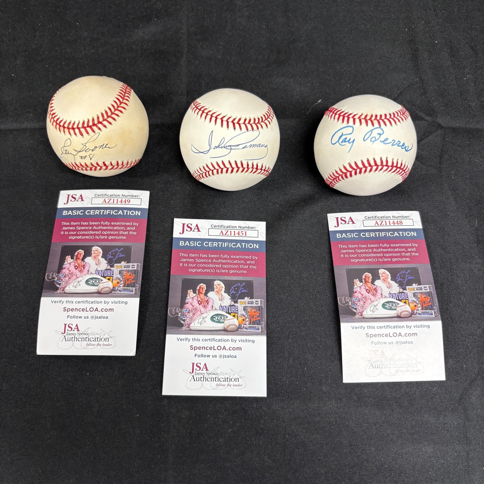 Baseballs Signed by Ray Boone, Johnny Romano, Ray Berres. All items are sold as is. Please look at pictures carefully to determine what you believe are the condition of each lot. By choosing which card to use to register to bid, you authorize us to use the card on file that you used at the time of registration.at the end of the auction to pay for any lots and shipping you won. Happy Bidding and Best of luck! We offer in-house shipping. We are currently accepting consignments.