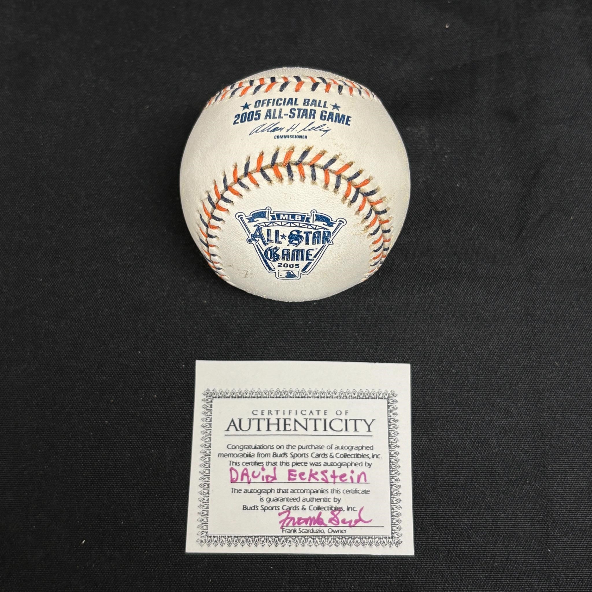 Official All Star Game 2005 Baseball Signed by David Eckstein. All items are sold as is. Please look at pictures carefully to determine what you believe are the condition of each lot. By choosing which card to use to register to bid, you authorize us to use the card on file that you used at the time of registration.at the end of the auction to pay for any lots and shipping you won. Happy Bidding and Best of luck! We offer in-house shipping. We are currently accepting consignments.