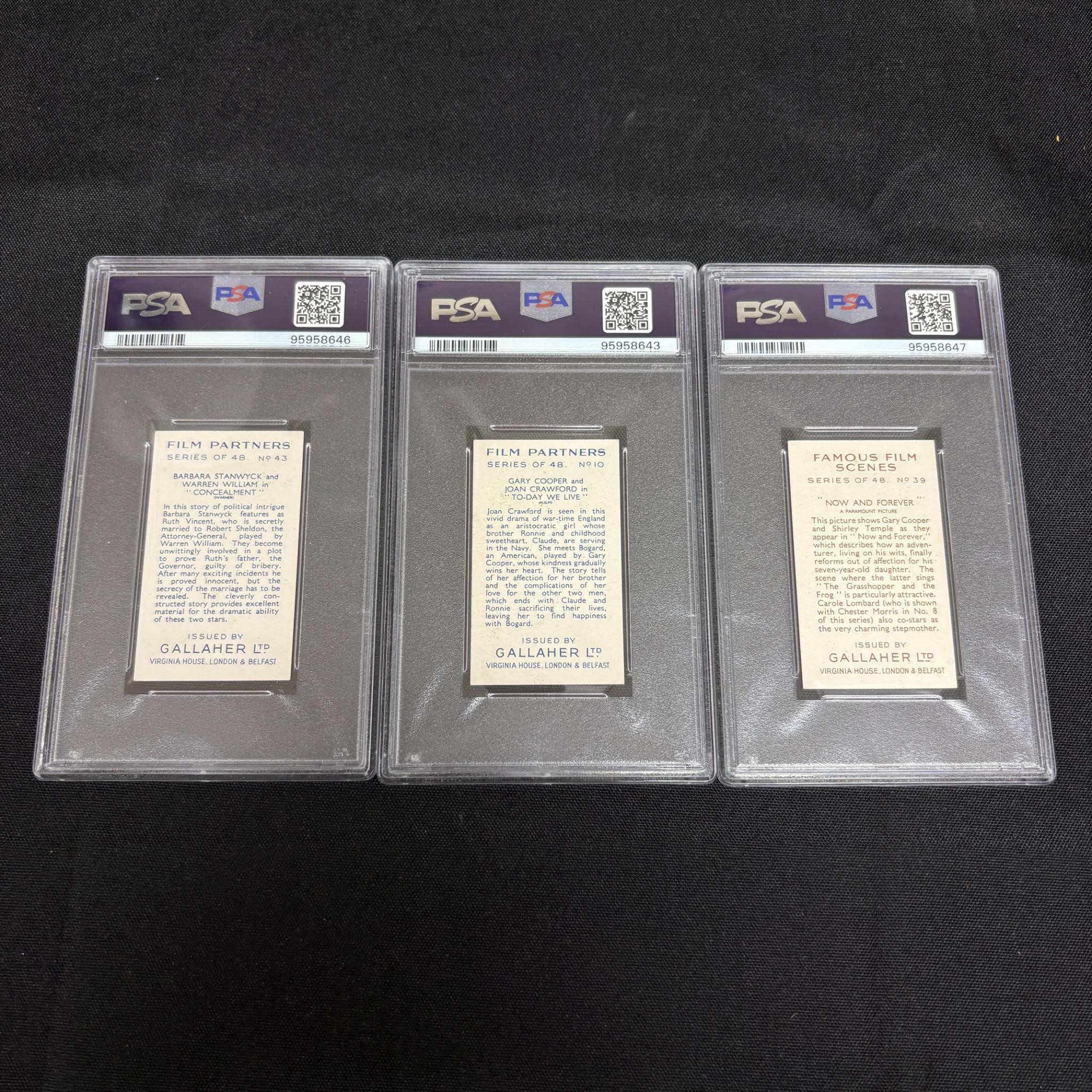 1935 Gallaher Film Partners Tobacco Cards, 1935 Gallaher Tobacco Card Famous Film Scenes. All items are sold as is. Please look at pictures carefully to determine what you believe are the condition of each lot. By choosing which card to use to register to bid, you authorize us to use the card on file that you used at the time of registration.at the end of the auction to pay for any lots and shipping you won. Happy Bidding and Best of luck! We offer in-house shipping. We are currently accepting consignments.