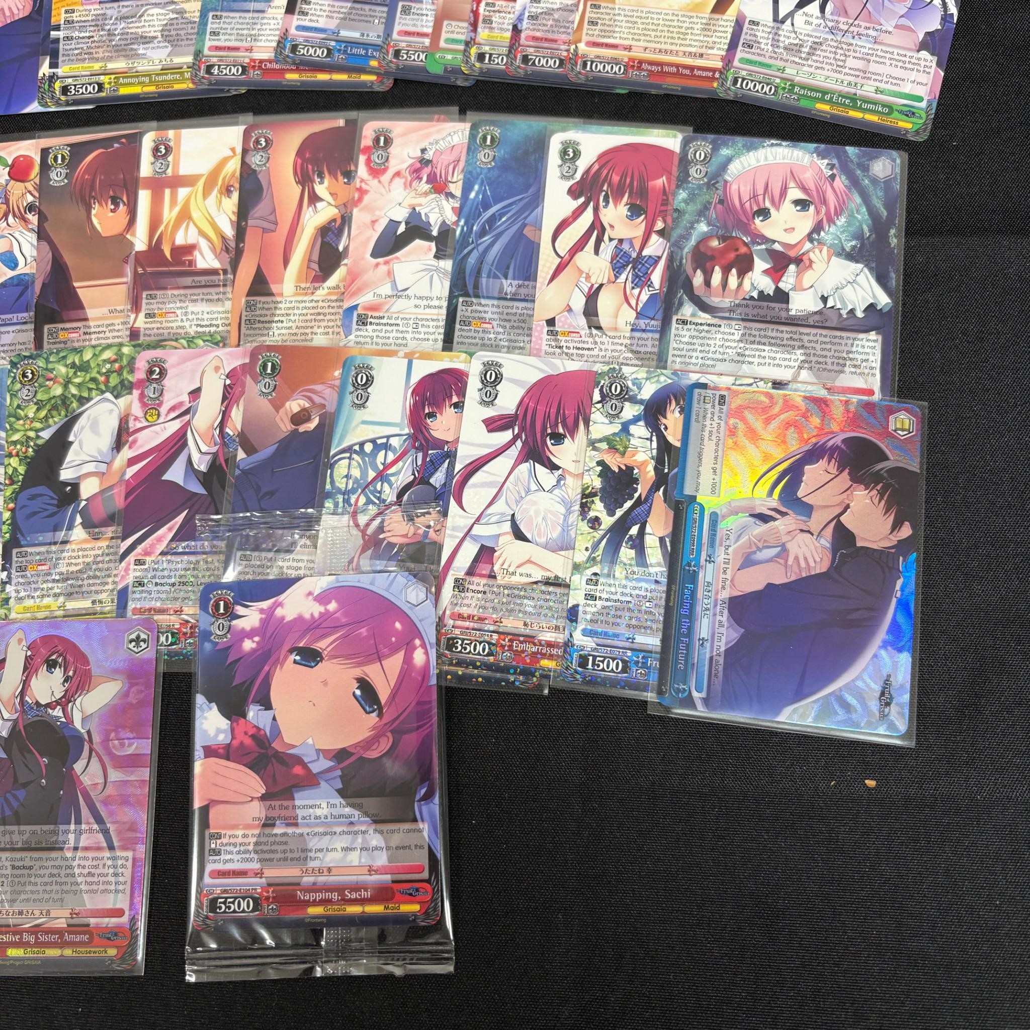 Lot of Weiss Schwarz Fruit of Grisha Anime Trading Cards. Includes Sealed Box Topper, SRs, and Foil Rares. All items are sold as is. Please look at pictures carefully to determine what you believe are the condition of each lot. By choosing which card to use to register to bid, you authorize us to use the card on file that you used at the time of registration.at the end of the auction to pay for any lots and shipping you won. Happy Bidding and Best of luck! We offer in-house shipping. We are currently accepting consignments.