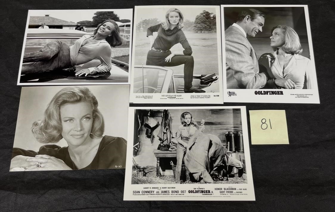 Nice group of Honor Blackman in Goldfinger photo lobby card, press photos, and movie stills. All items are sold as is. Please look at pictures carefully to determine what you believe are the condition of each lot. By choosing which card to use to register to bid, you authorize us to use the card on file that you used at the time of registration.at the end of the auction to pay for any lots and shipping you won. Happy Bidding and Best of luck! We offer in-house shipping. We are currently accepting consignments.