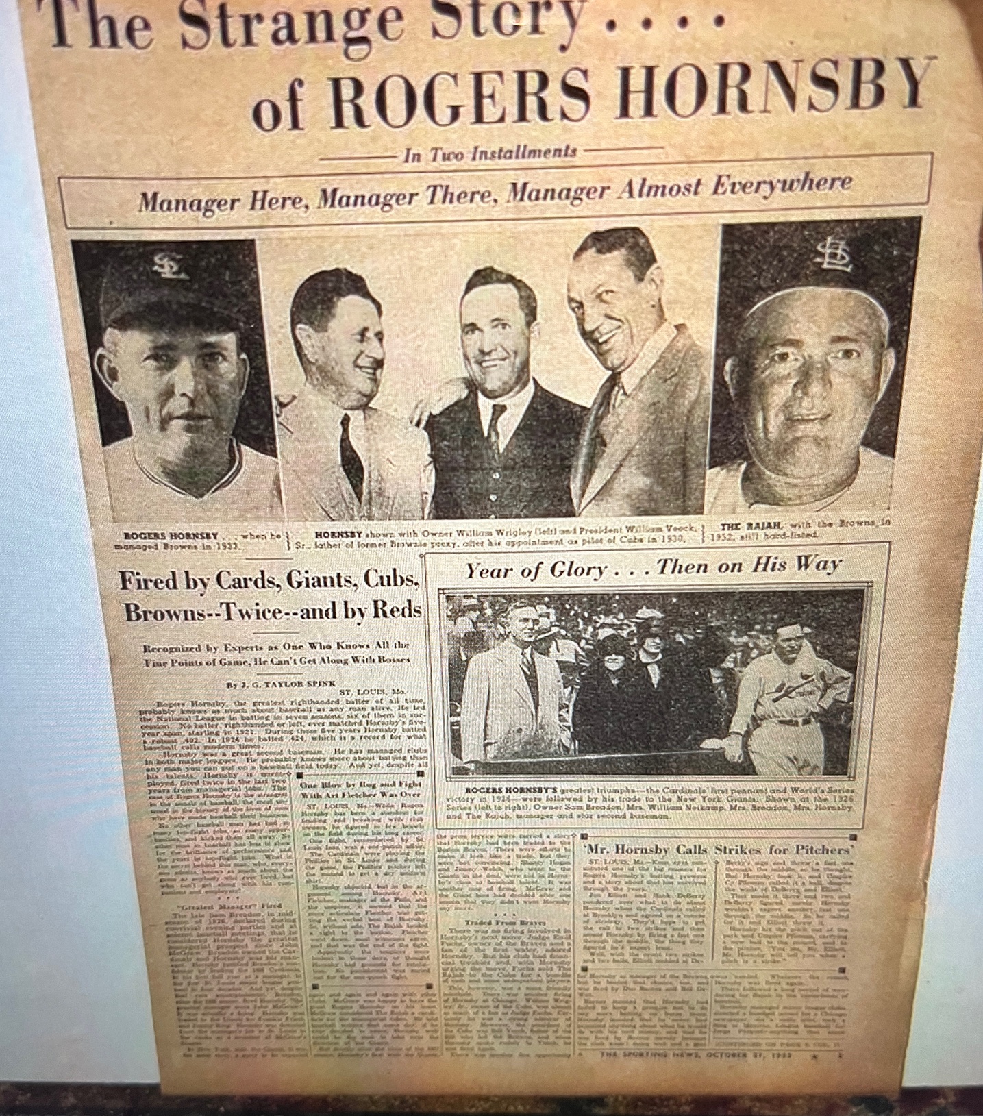 RARE Newspaper Printing plate of a photo of Baseball Player Roger Hornsby. Although not exact, we found a newspaper article of Hornsby with a similar photo. All items are sold as is. Please look at pictures carefully to determine what you believe are the condition of each lot. By choosing which card to use to register to bid, you authorize us to use the card on file with Hi-bid at the end of the auction to pay for any lots and shipping you won. Happy Bidding and Best of luck!