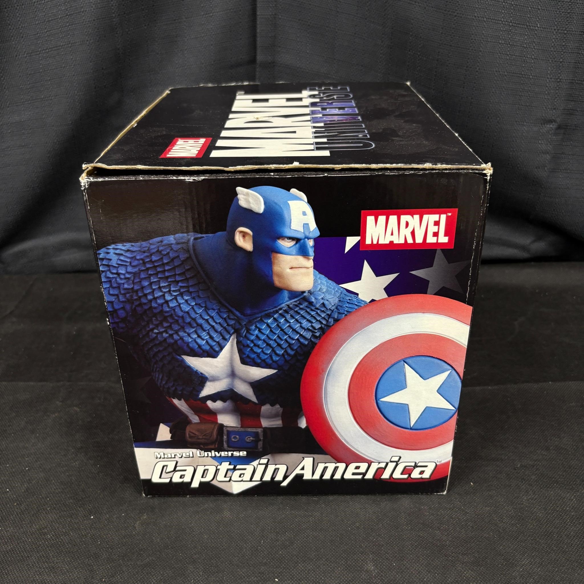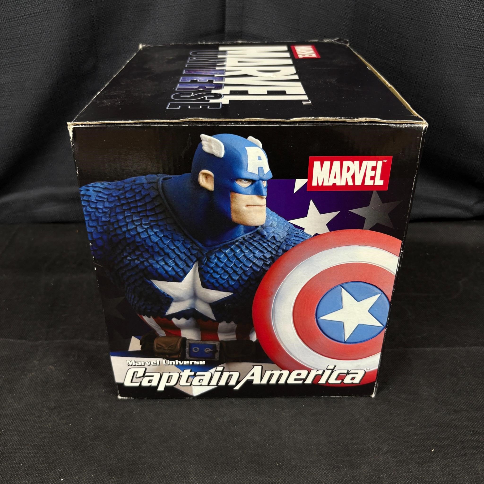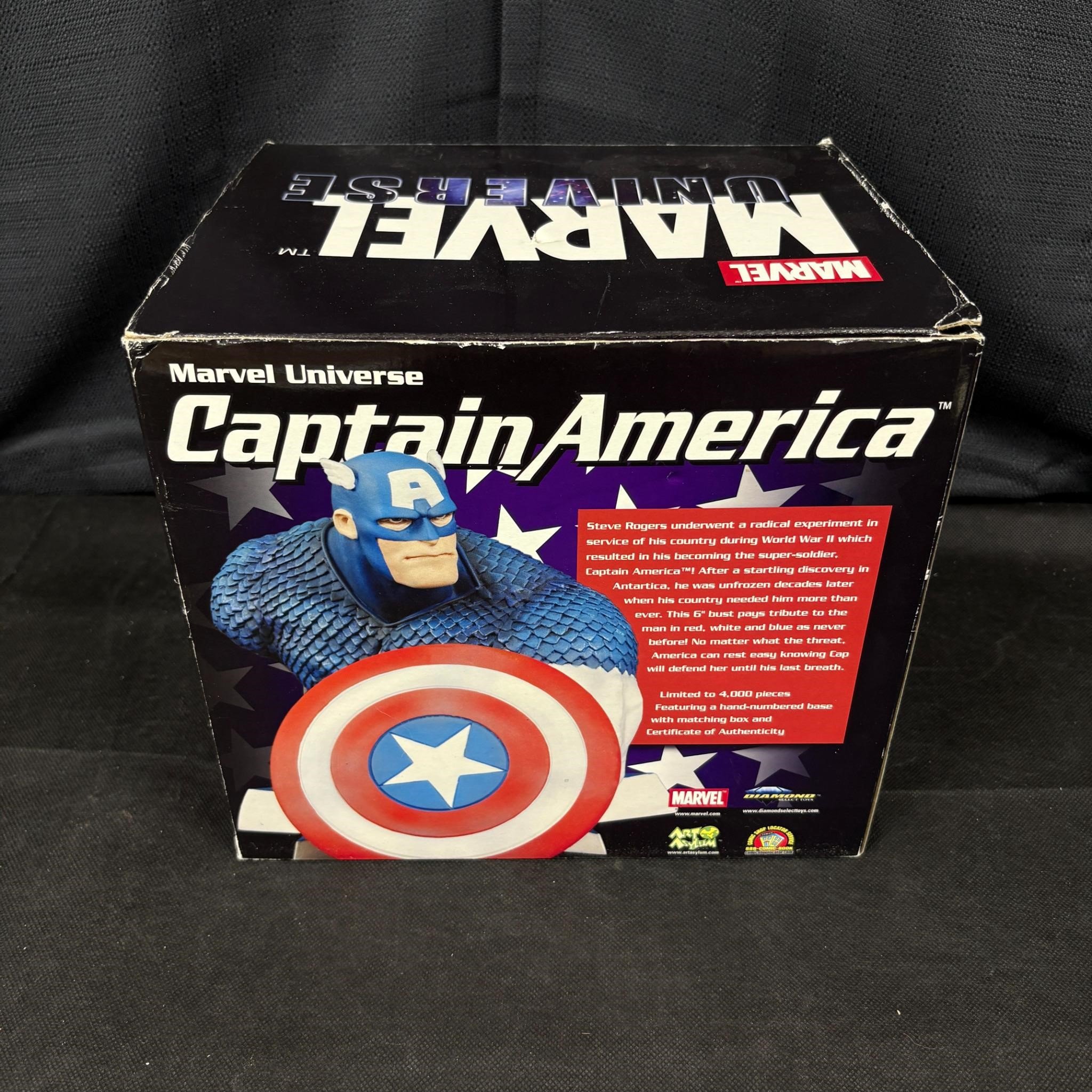 Captain America Marvel Universe Art Asylum Bust Diamond Select Toys #599 / 4000 We ship in-house! We ship internationally. We also offer pick up and we offer a discount for cash payments. Please look at pictures carefully to determine what you believe are the condition of each lot. We offer in person or virtual previews and we can take additional pictures, or answer questions about any lot until about 24 hours prior to auction. So all lots sold as is. By choosing which card to use to register to bid, you authorize the auction host to charge the card on file at the end of the auction to pay for any lots and shipping you won. Happy Bidding and Best of luck!