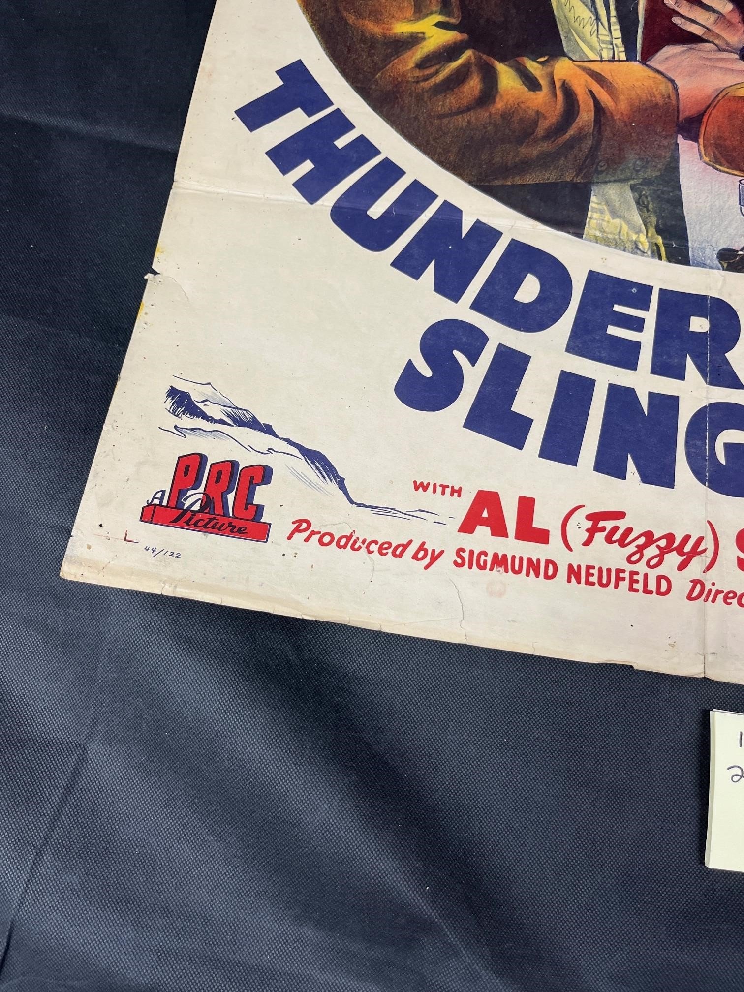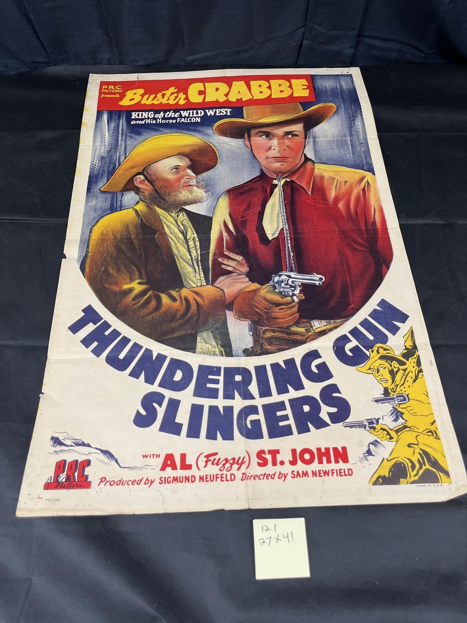 Original One-Sheet Movie Poster for Thundering Gun Slingers from the 1944 Film. We ship in-house! We ship internationally. We also offer pick up and we offer a discount for cash payments. Please look at pictures carefully to determine what you believe are the condition of each lot. We offer in person or virtual previews and we can take additional pictures, or answer questions about any lot until about 24 hours prior to auction. So all lots sold as is. By choosing which card to use to register to bid, you authorize the auction host to charge the card on file at the end of the auction to pay for any lots and shipping you won. Happy Bidding and Best of luck!