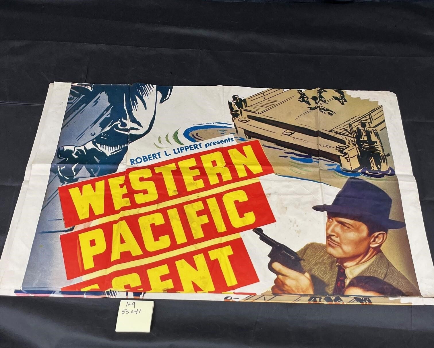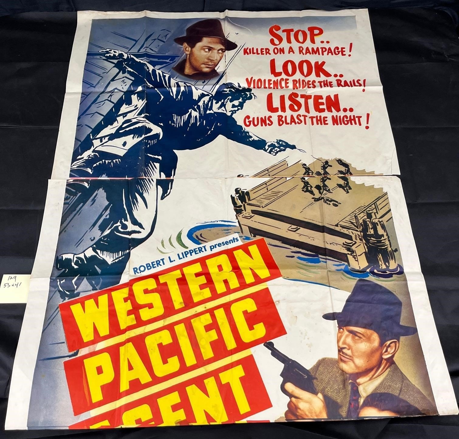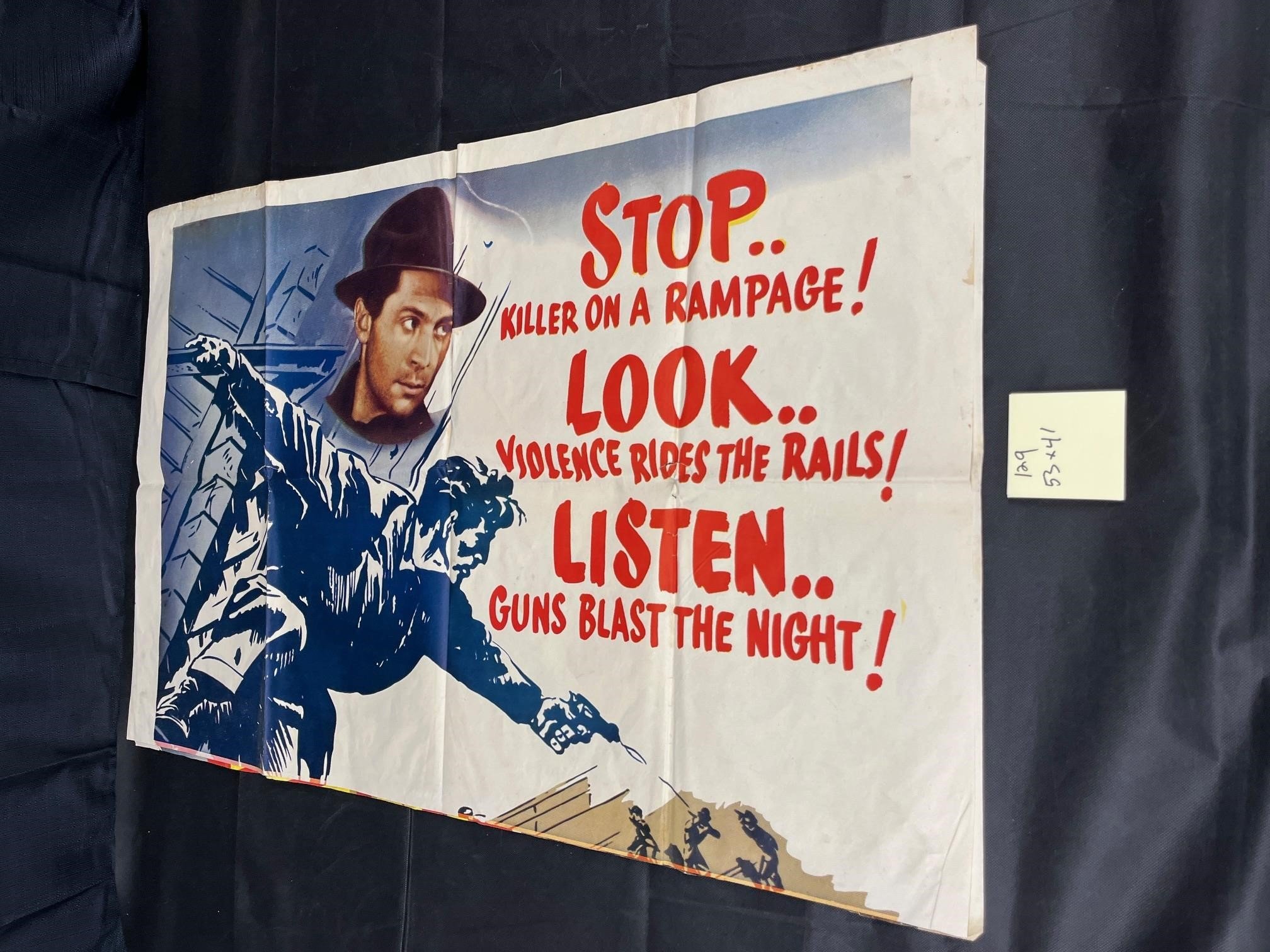 Missing the bottom piece. This 1950 three sheet has 2 of the three sheets. We ship in-house! We ship internationally. We also offer pick up and we offer a discount for cash payments. Please look at pictures carefully to determine what you believe are the condition of each lot. We offer in person or virtual previews and we can take additional pictures, or answer questions about any lot until about 24 hours prior to auction. So all lots sold as is. By choosing which card to use to register to bid, you authorize the auction host to charge the card on file at the end of the auction to pay for any lots and shipping you won. Happy Bidding and Best of luck!