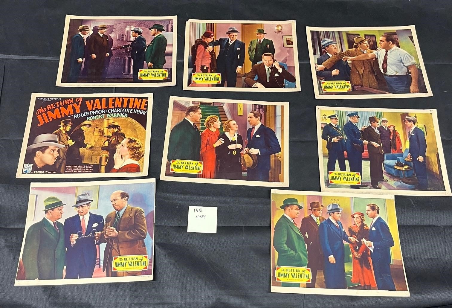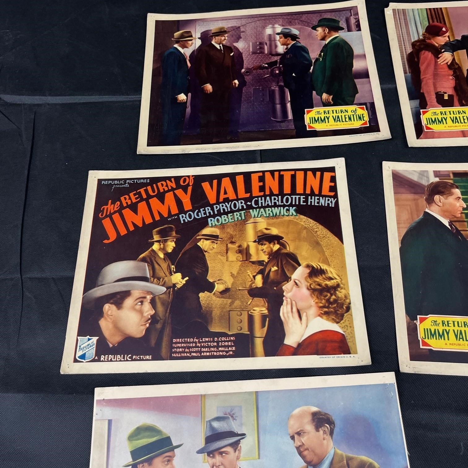 Complete Set of Jimmy Valentine Lobby Cards. Two of the lobby cards have been trimmed. We ship in-house! We ship internationally. We also offer pick up and we offer a discount for cash payments. Please look at pictures carefully to determine what you believe are the condition of each lot. We offer in person or virtual previews and we can take additional pictures, or answer questions about any lot until about 24 hours prior to auction. So all lots sold as is. By choosing which card to use to register to bid, you authorize the auction host to charge the card on file at the end of the auction to pay for any lots and shipping you won. Happy Bidding and Best of luck!