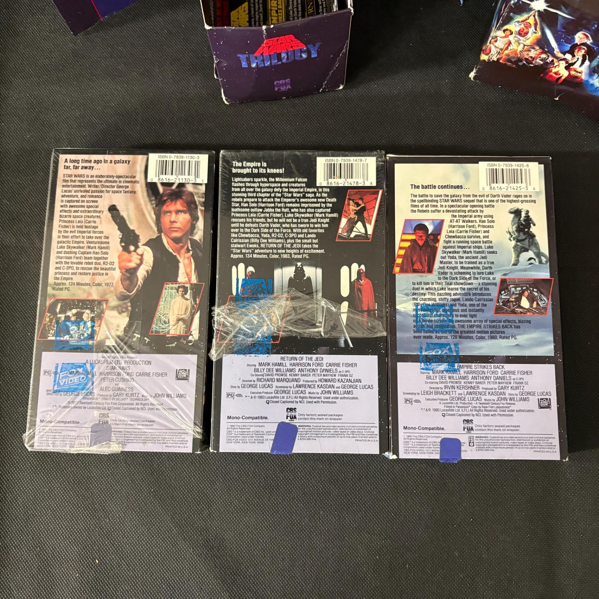 Star Wars Trilogy VHS 3 Tape Original Theatrical Release Red Label Fox RARE We ship in-house! We ship internationally. We also offer pick up and we offer a discount for cash payments. Please look at pictures carefully to determine what you believe are the condition of each lot. We offer in person or virtual previews and we can take additional pictures, or answer questions about any lot until about 24 hours prior to auction. So all lots sold as is. By choosing which card to use to register to bid, you authorize the auction host to charge the card on file at the end of the auction to pay for any lots and shipping you won. Happy Bidding and Best of luck!