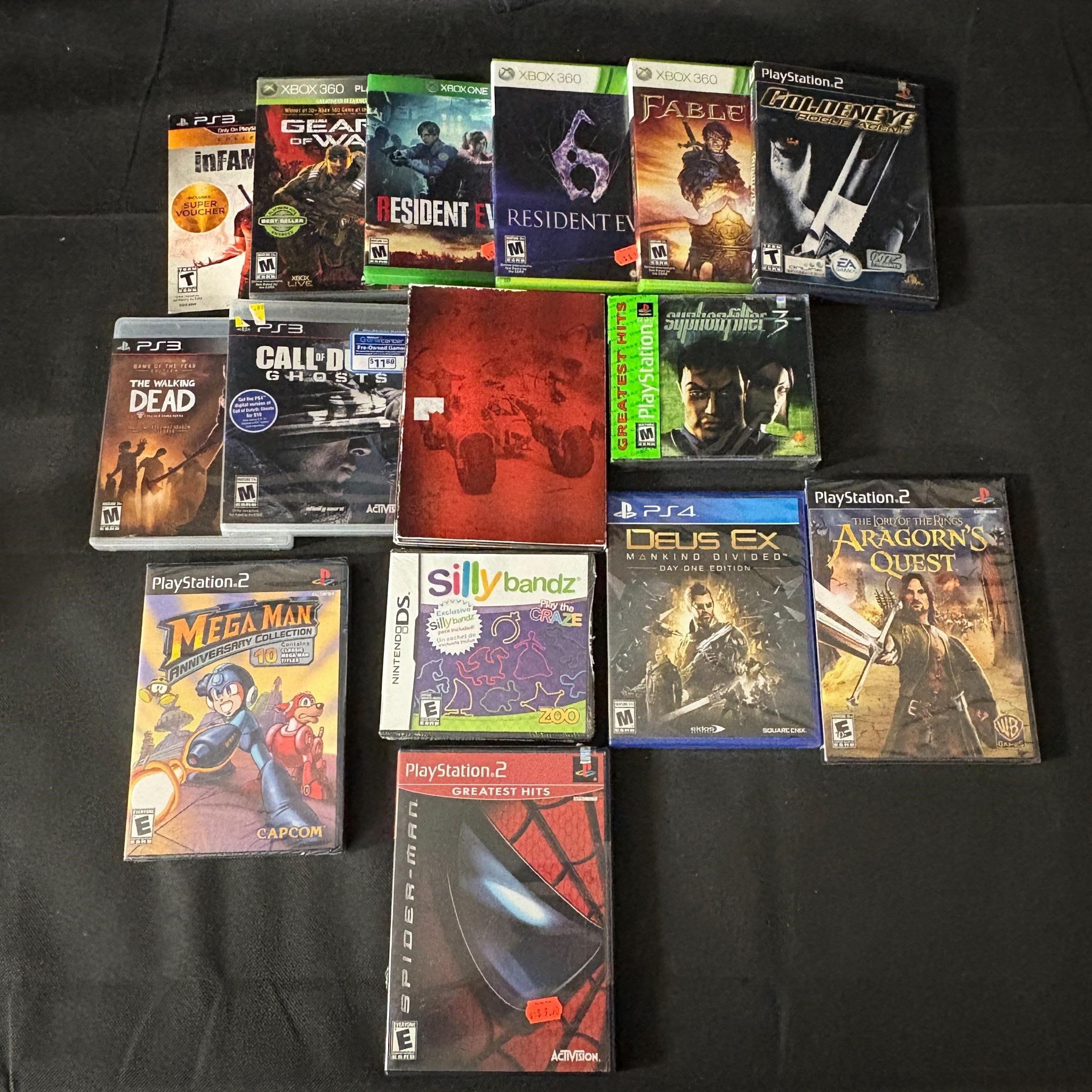 Lot of Video Games includes Sealed and opened Games. Sealed Spider-Man, Mega Man, Call of Duty Ghosts, Walking Dead, Aragon’s Quest and more. Games For Playstation XBOX + We ship in-house! We ship internationally. We also offer pick up and we offer a discount for cash payments. Please look at pictures carefully to determine what you believe are the condition of each lot. We offer in person or virtual previews and we can take additional pictures, or answer questions about any lot until about 24 hours prior to auction. So all lots sold as is. By choosing which card to use to register to bid, you authorize the auction host to charge the card on file at the end of the auction to pay for any lots and shipping you won. Happy Bidding and Best of luck!