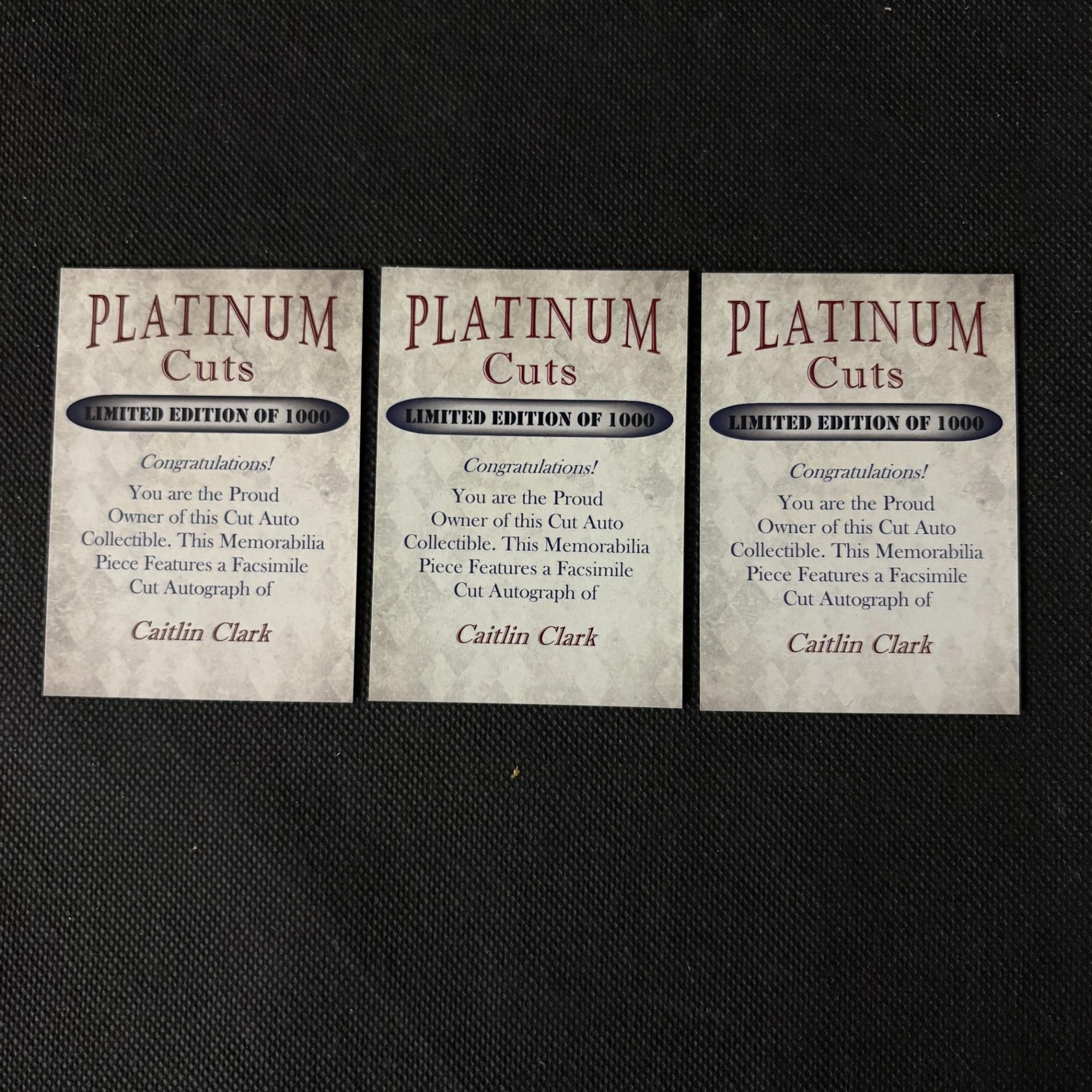 Caitlin Clark Platinum Cuts Facsimile Auto Cards LTD 1,000 We ship in-house! We ship internationally. We also offer pick up and we offer a discount for cash payments. Please look at pictures carefully to determine what you believe are the condition of each lot. We offer in person or virtual previews and we can take additional pictures, or answer questions about any lot until about 24 hours prior to auction. So all lots sold as is. By choosing which card to use to register to bid, you authorize the auction host to charge the card on file at the end of the auction to pay for any lots and shipping you won. Happy Bidding and Best of luck!