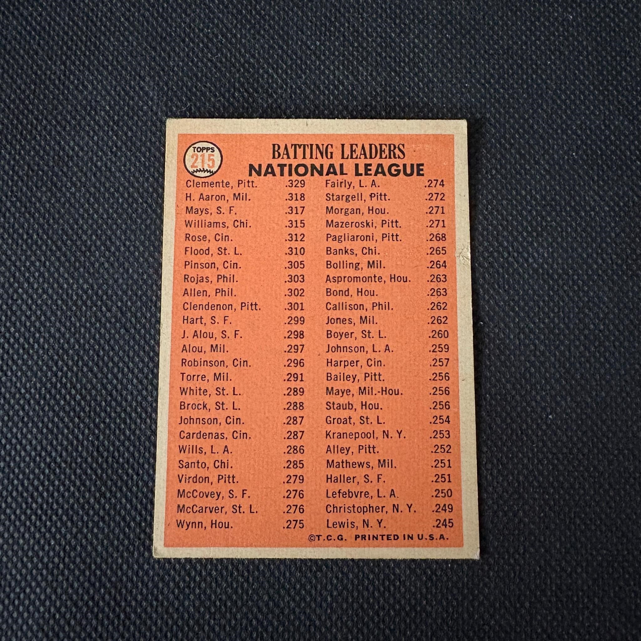 1966 Topps Batting Leaders Baseball Card, Mays