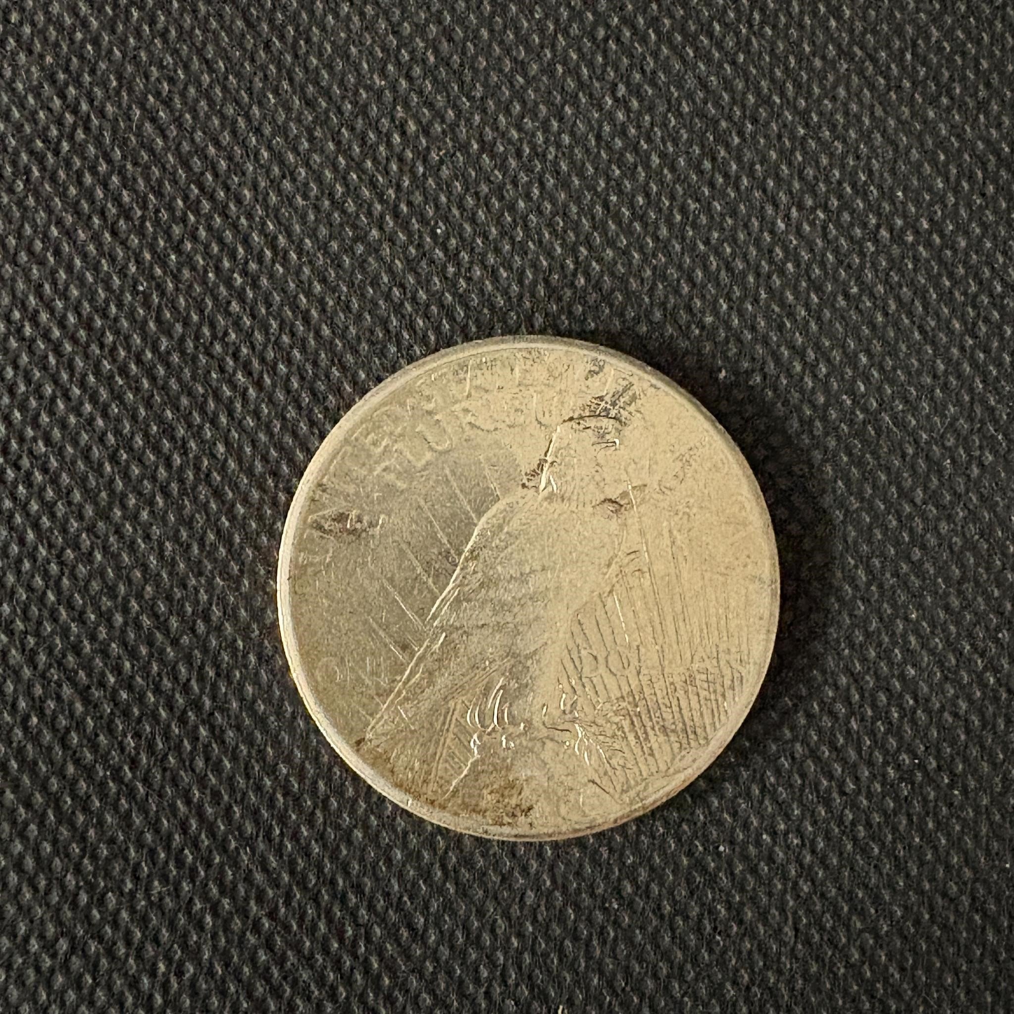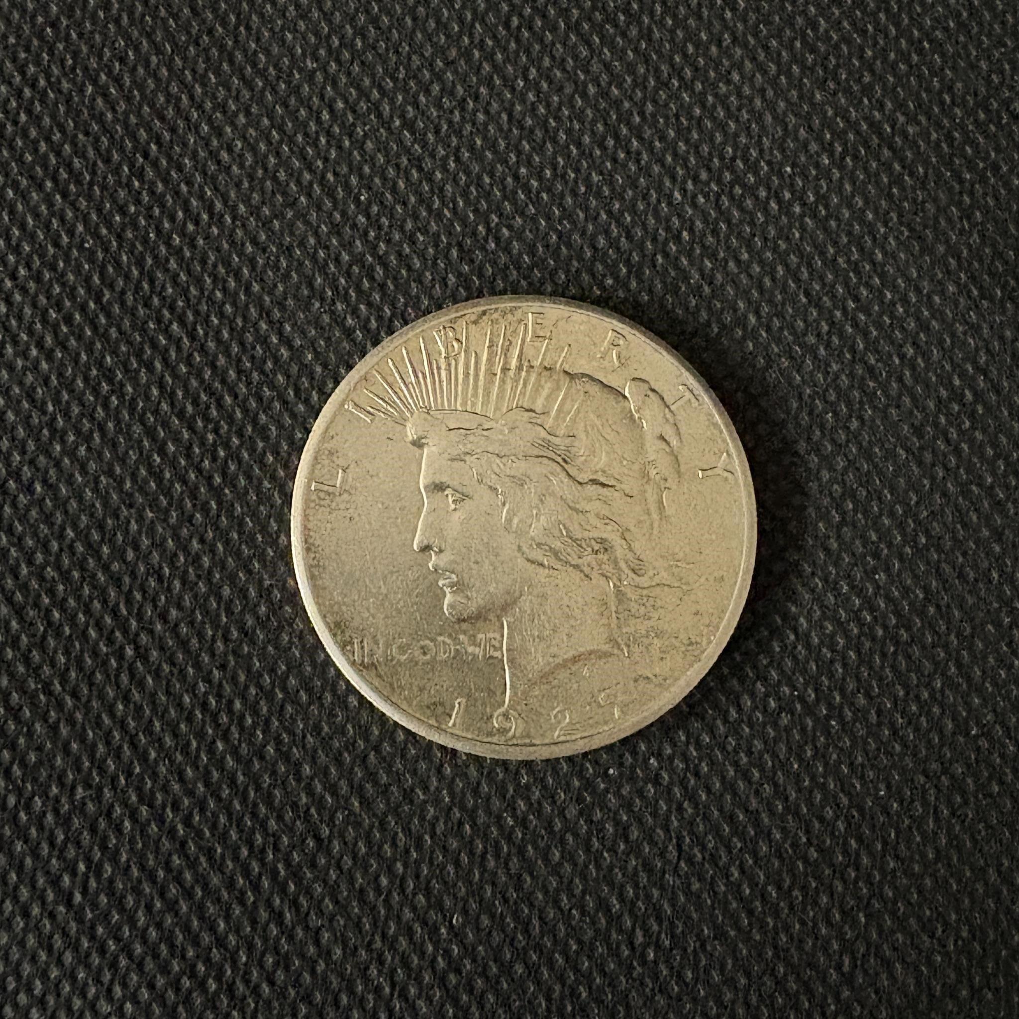 1927 silver Peace Dollar. Popular key-date U.S. coin issue.