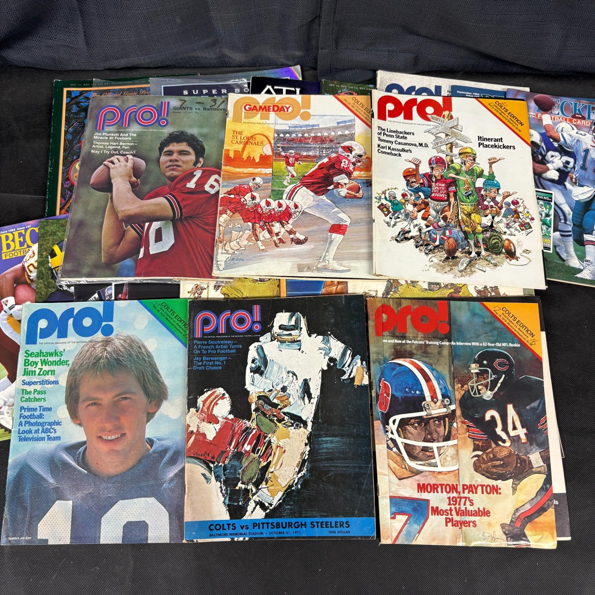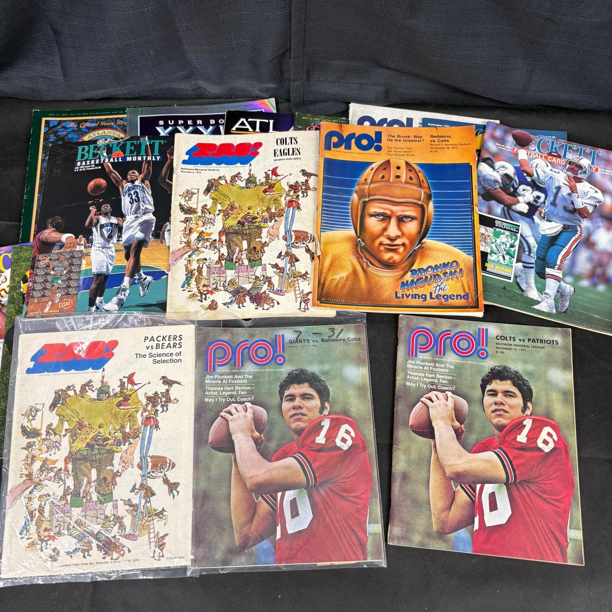 1960s-modern sports programs. Includes Pro!, GameDay, Beckett Price Guides, and Super Bowl Programs. We ship in-house! We ship internationally. We also offer pick up and we offer a discount for cash payments. Please look at pictures carefully to determine what you believe are the condition of each lot. We offer in person or virtual previews and we can take additional pictures, or answer questions about any lot until about 24 hours prior to auction. So all lots sold as is. By choosing which card to use to register to bid, you authorize the auction host to charge the card on file at the end of the auction to pay for any lots and shipping you won. Happy Bidding and Best of luck!