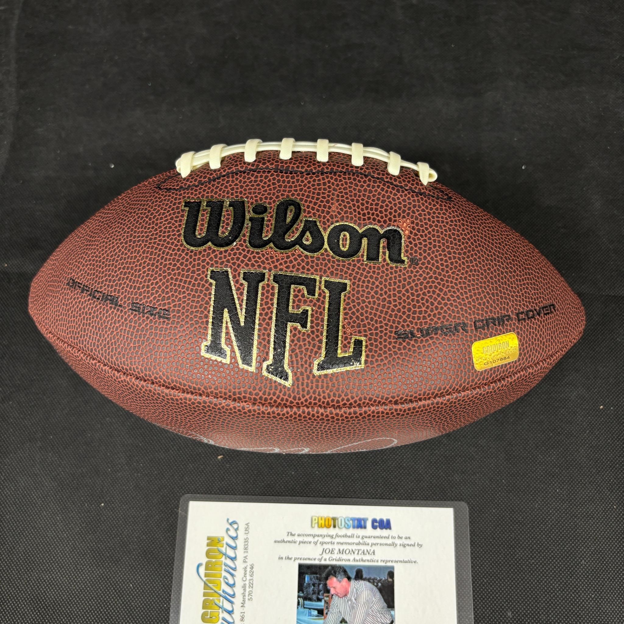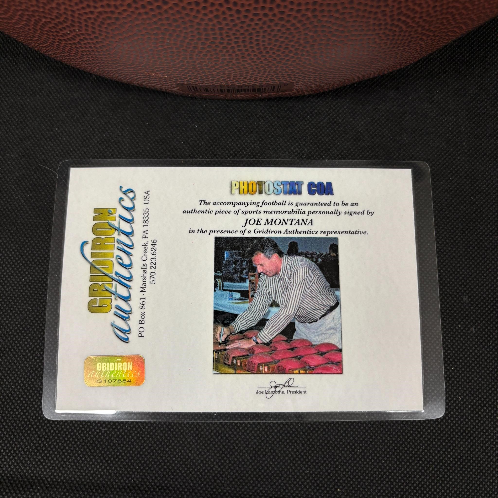 Joe Montana Signed Football with Gridiron Authentics COA. We ship in-house! We ship internationally. We also offer pick up and we offer a discount for cash payments. Please look at pictures carefully to determine what you believe are the condition of each lot. We offer in person or virtual previews and we can take additional pictures, or answer questions about any lot until about 24 hours prior to auction. So all lots sold as is. By choosing which card to use to register to bid, you authorize the auction host to charge the card on file at the end of the auction to pay for any lots and shipping you won. Happy Bidding and Best of luck!