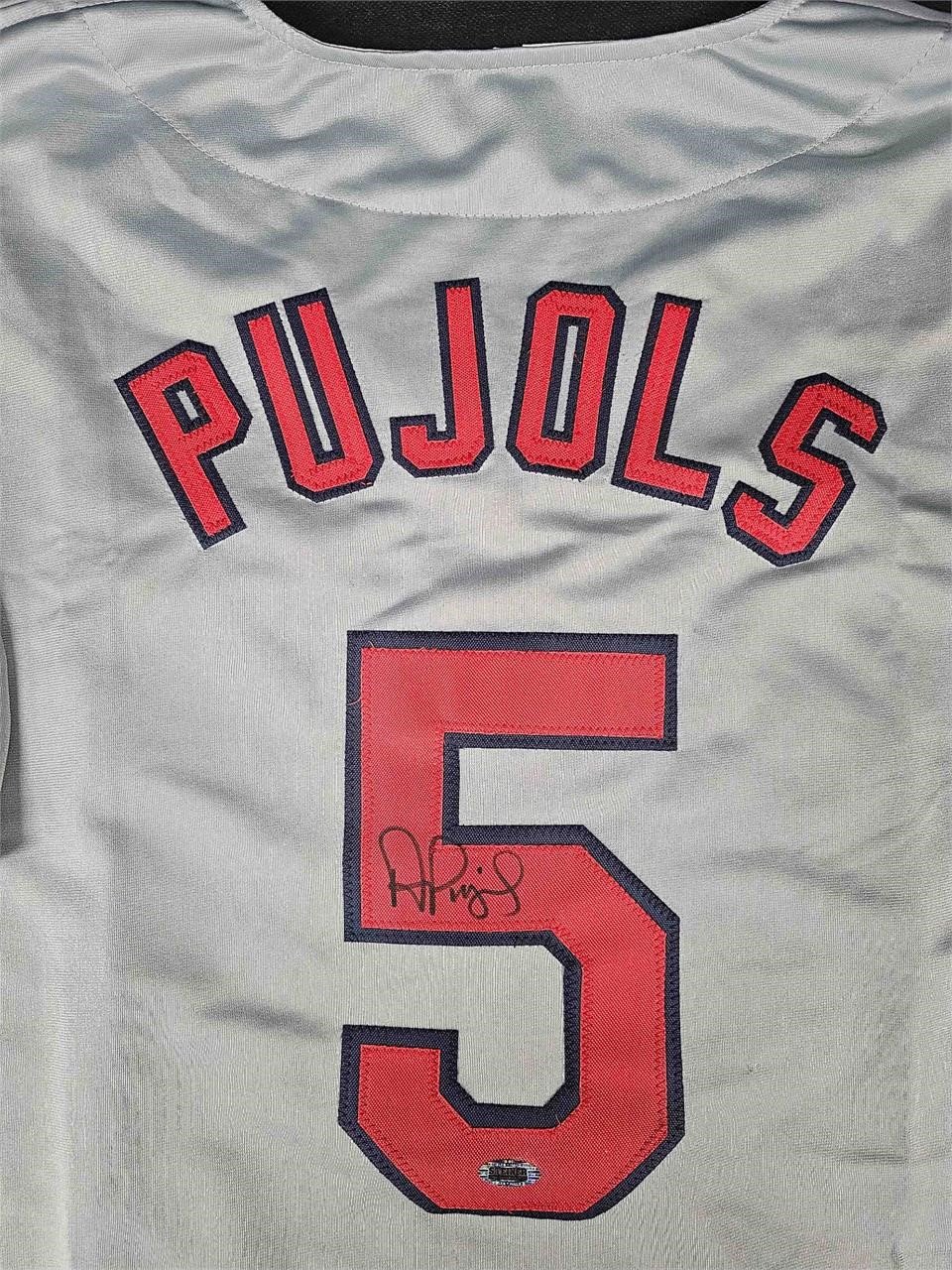 Autographed St. Louis Cardinals jersey signed by Albert Pujols, three-time MVP and World Series champion. Comes with Steiner Sports Certificate of Authenticity. Perfect piece for celebrating one of baseball’s all-time great sluggers.