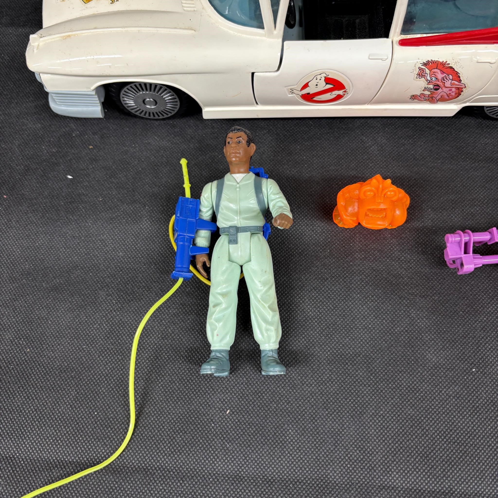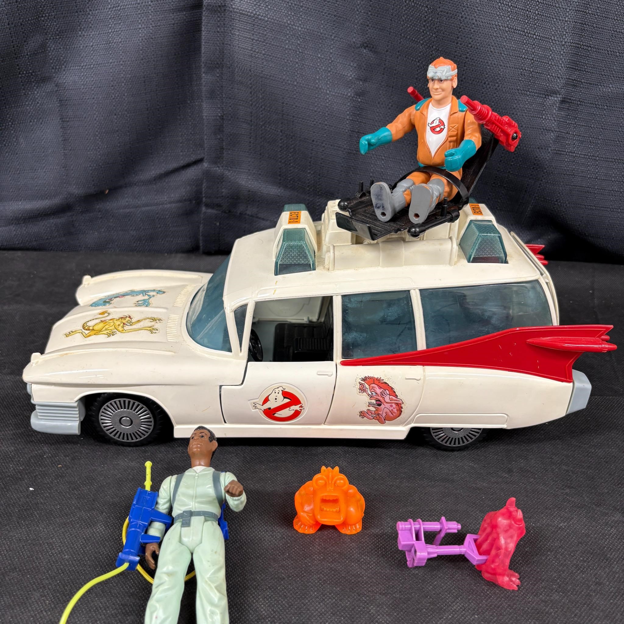 Ghostbusters Ecto-1 Car with Action Figures 1984. We ship in-house! We ship internationally. We also offer pick up and we offer a discount for cash payments. Please look at pictures carefully to determine what you believe are the condition of each lot. We offer in person or virtual previews and we can take additional pictures, or answer questions about any lot until about 24 hours prior to auction. So all lots sold as is. By choosing which card to use to register to bid, you authorize the auction host to charge the card on file at the end of the auction to pay for any lots and shipping you won. Happy Bidding and Best of luck!