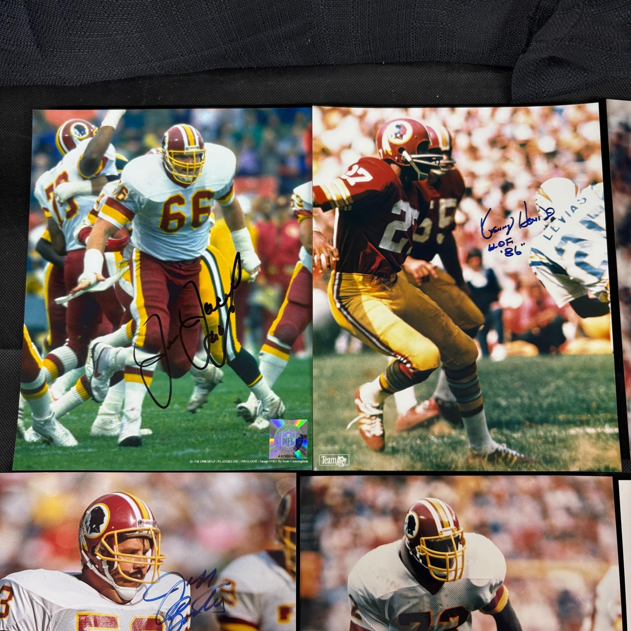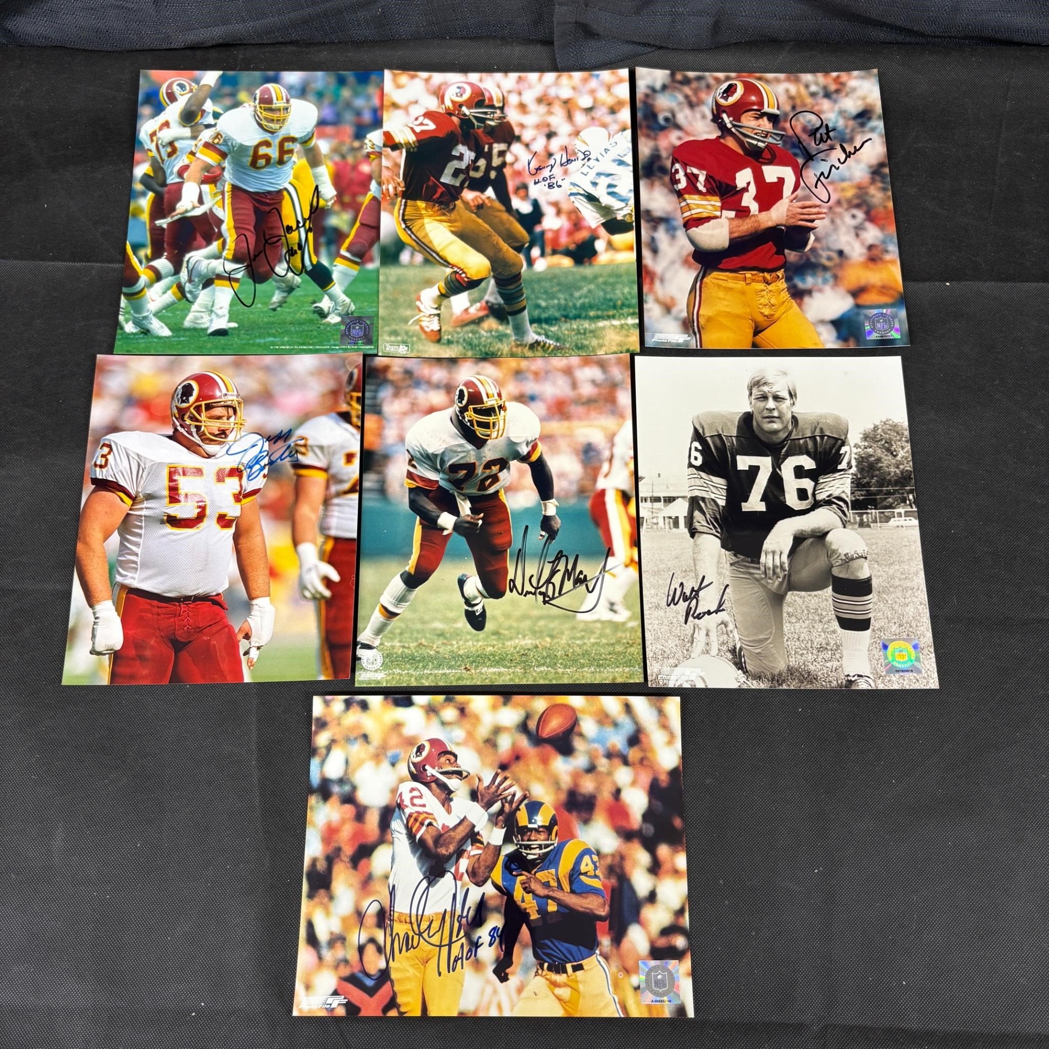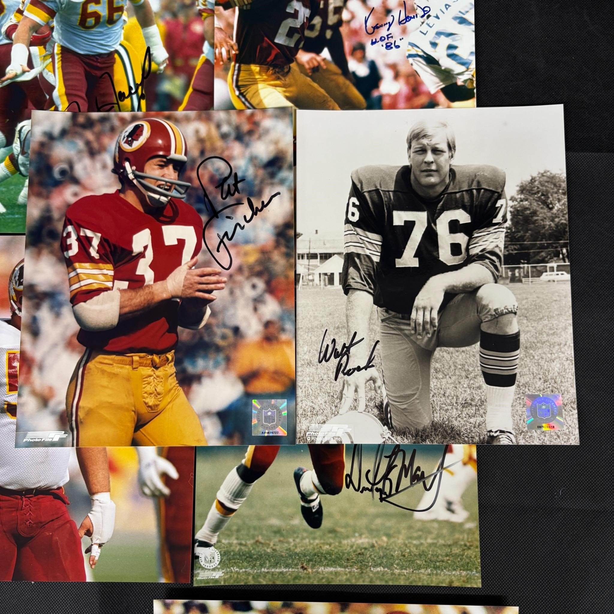 Walter Rock, Dexter Manly, Jeff Bostich, Joe Jacobey, Kenny Houston, Pat Fischer, Charlie Taylor Signed football photos. No COA, some photos have NFL Stickers.