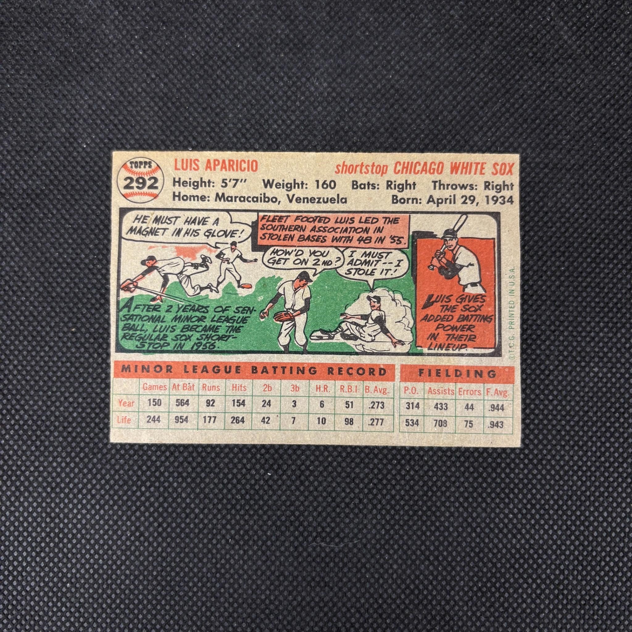 1956 Topps Baseball Card Luis Aparicio RC We ship in-house! We ship internationally. We also offer pick up and we offer a discount for cash payments. Please look at pictures carefully to determine what you believe are the condition of each lot. We offer in person or virtual previews and we can take additional pictures, or answer questions about any lot until about 24 hours prior to auction. So all lots sold as is. By choosing which card to use to register to bid, you authorize the auction host to charge the card on file at the end of the auction to pay for any lots and shipping you won. Happy Bidding and Best of luck!